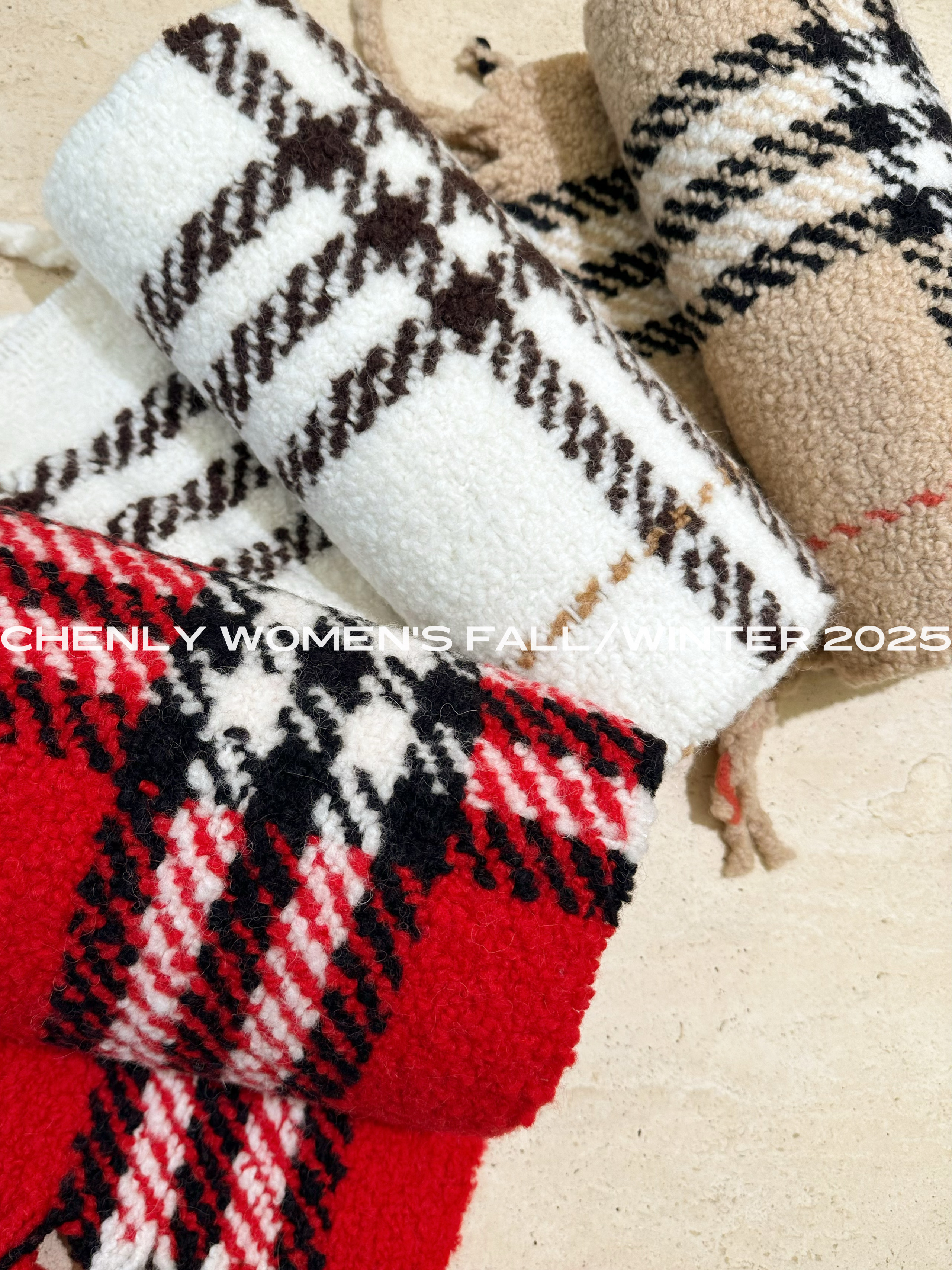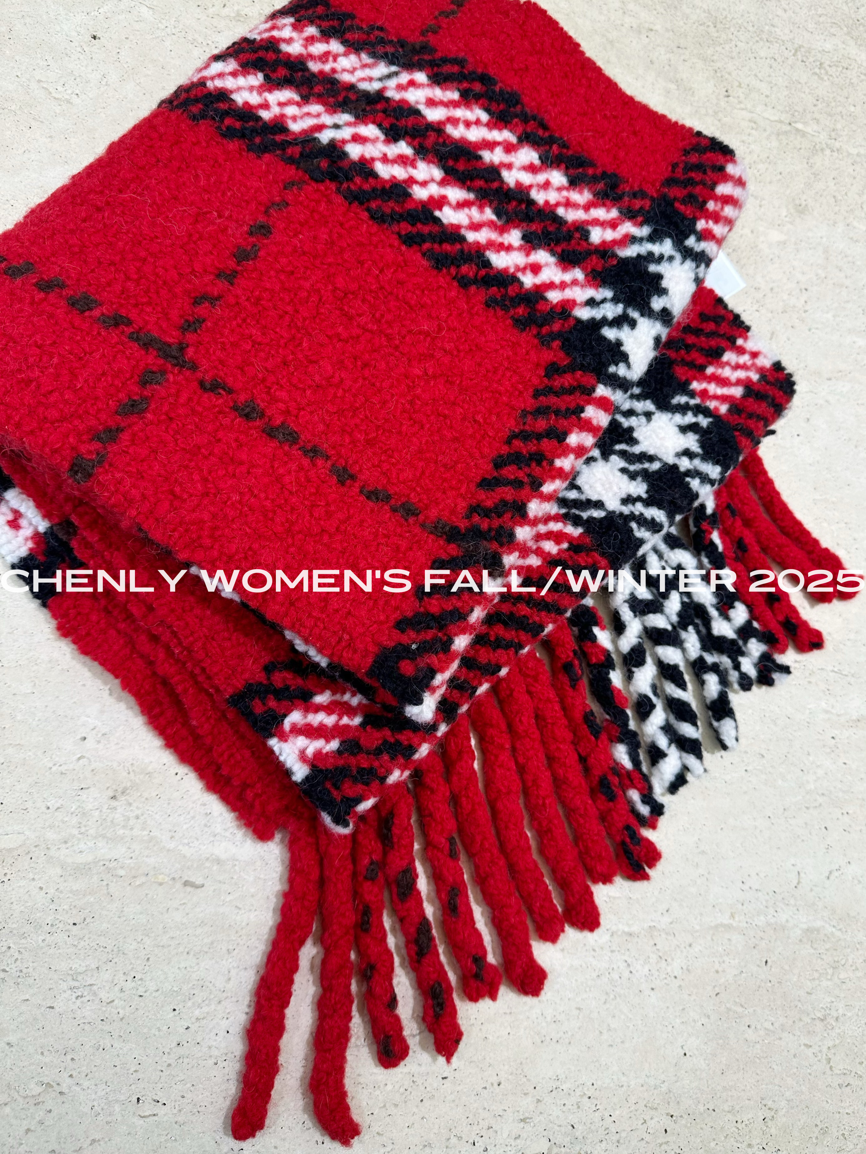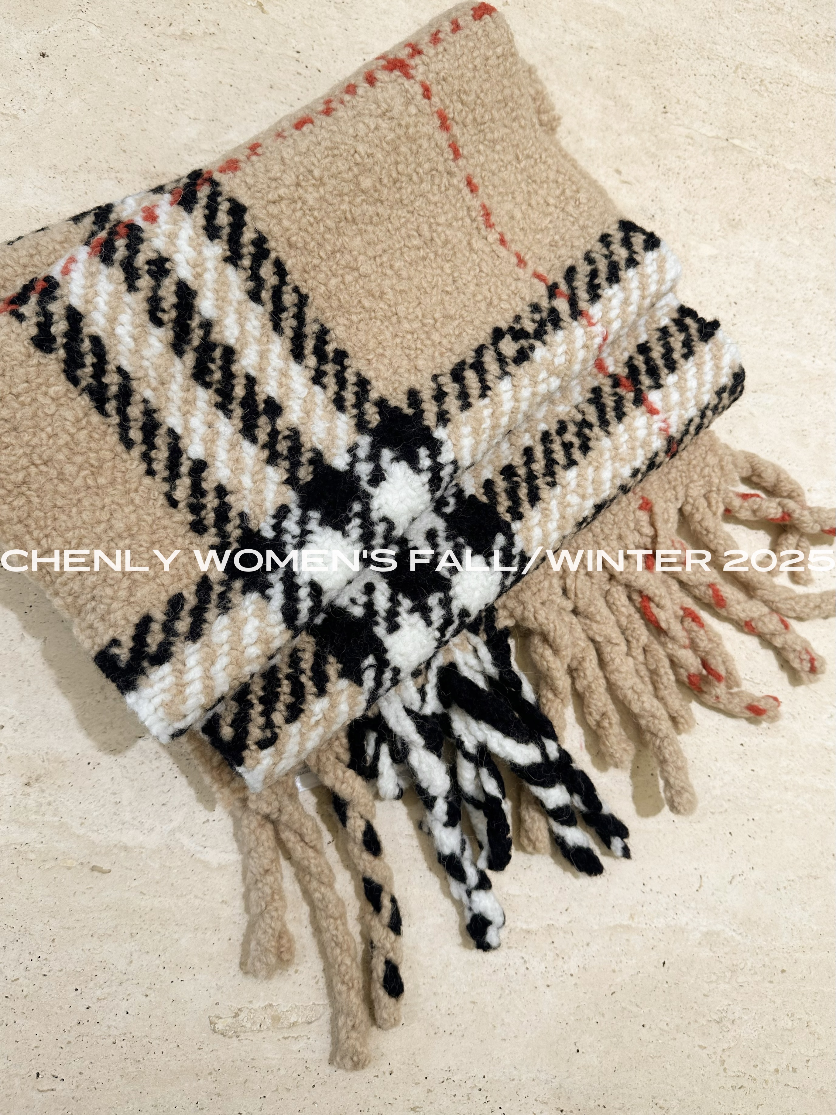 尘衣|25F/W 粗针提花格纹羊驼毛羊毛围巾