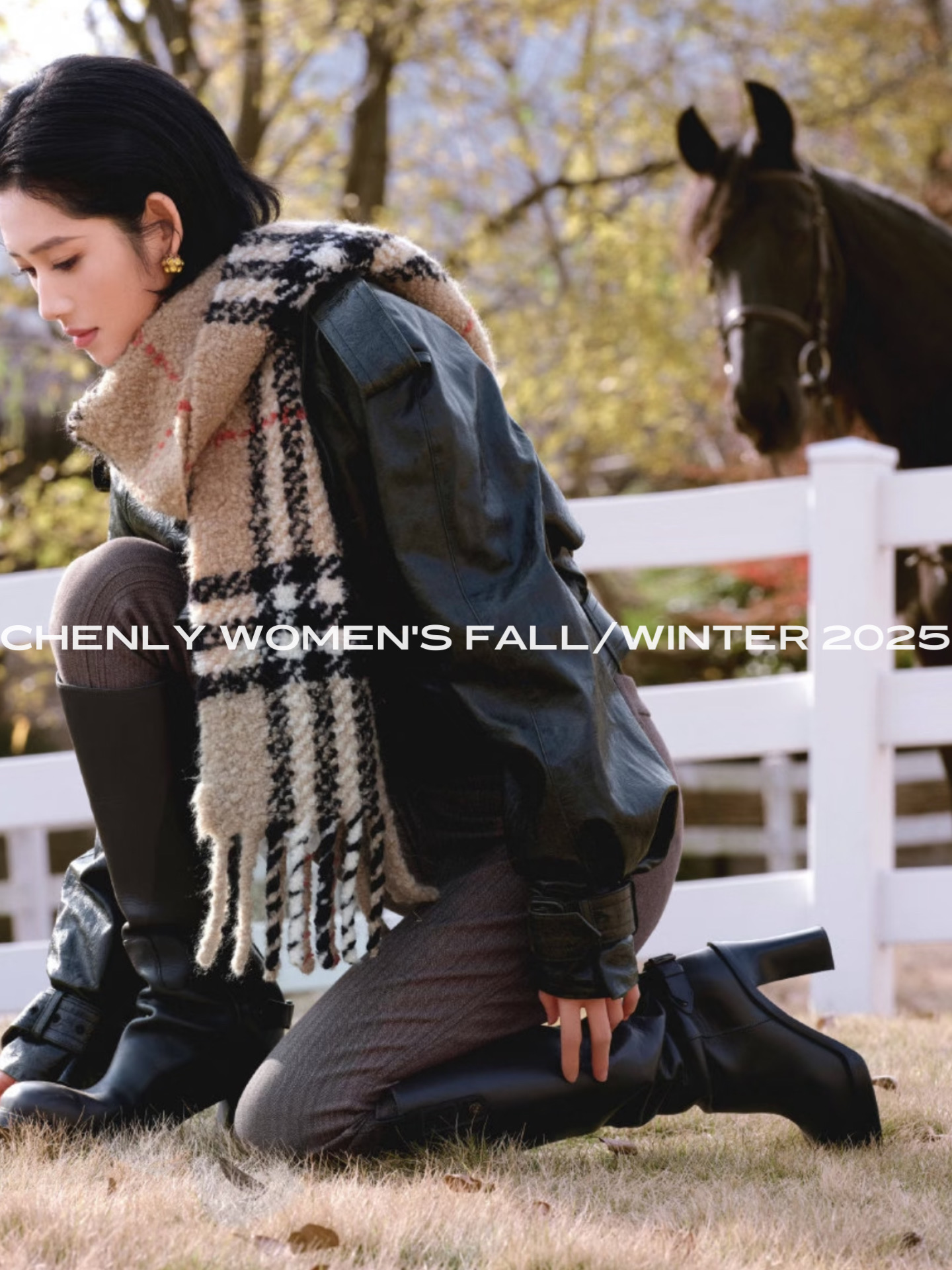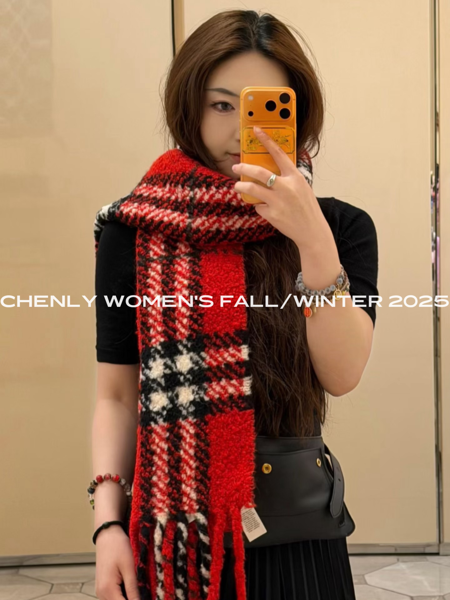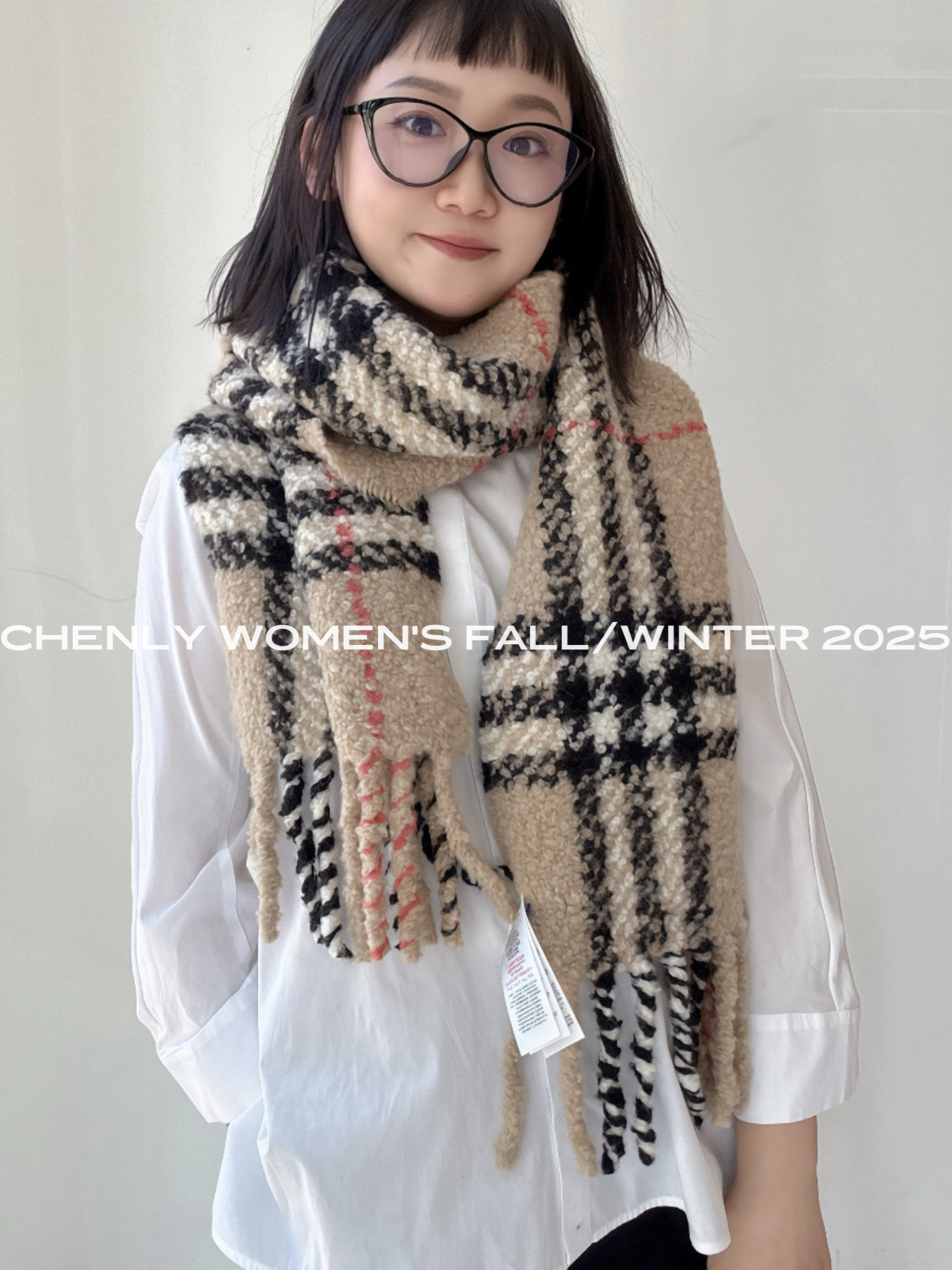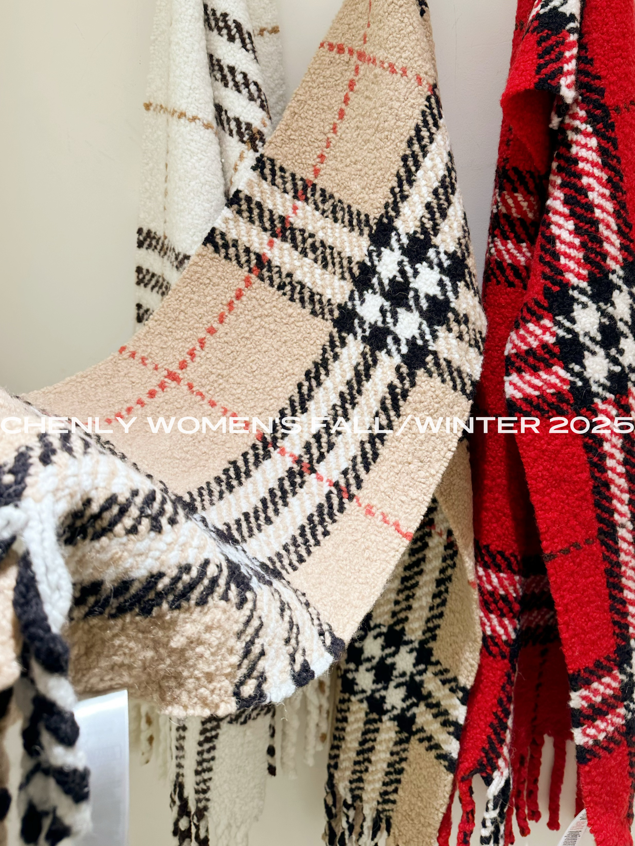 尘衣|25F/W 粗针提花格纹羊驼毛羊毛围巾