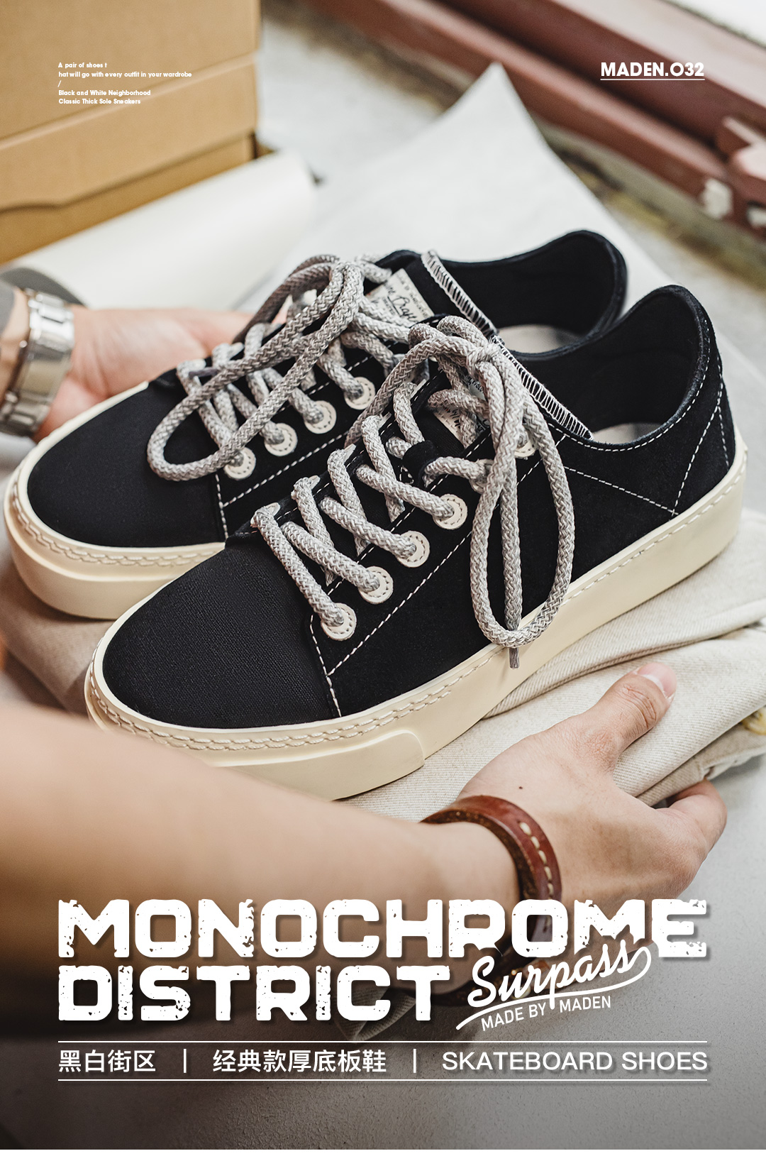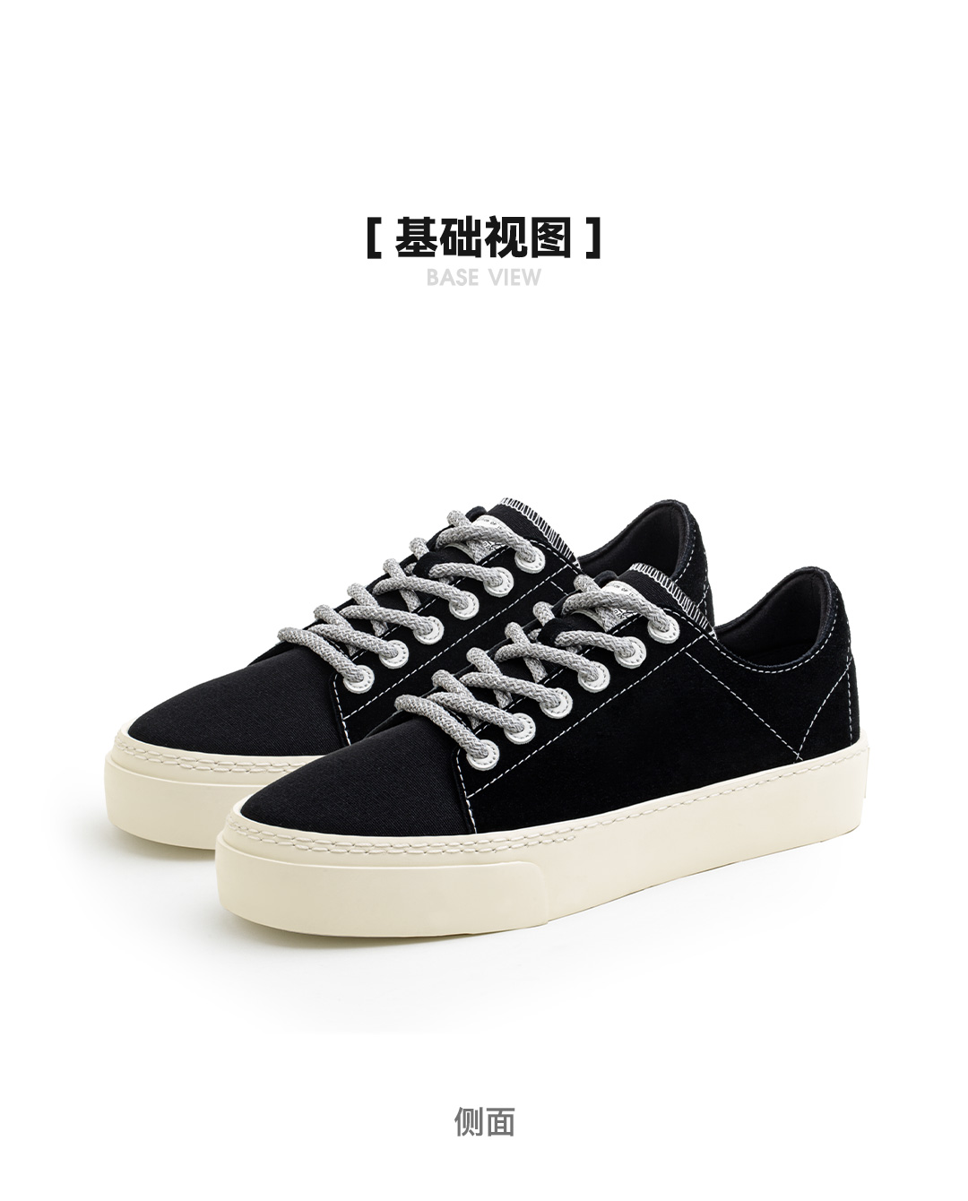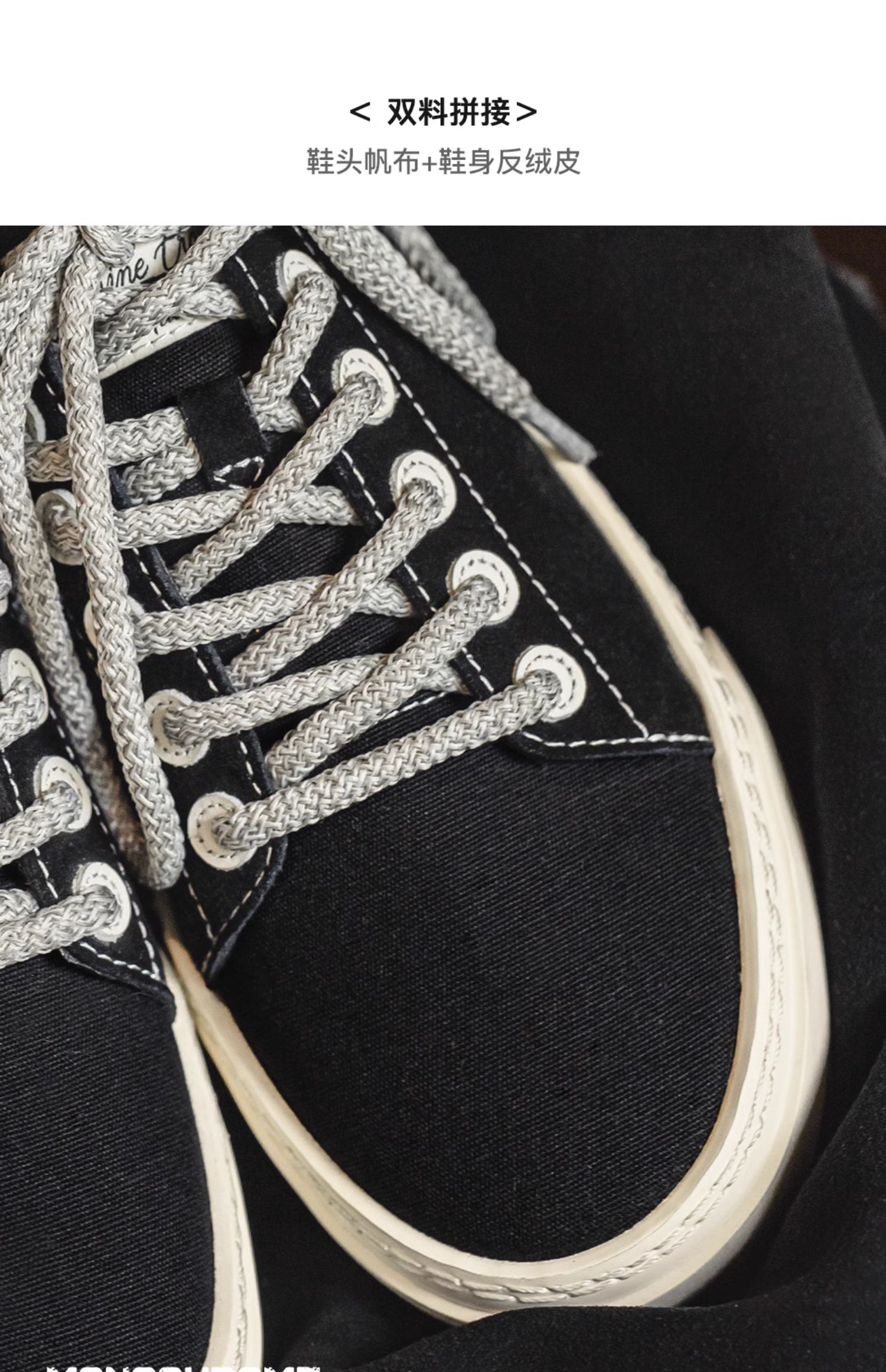 马登厚底帆布鞋秋冬新款翻毛皮黑色低帮增高男鞋休闲运动百搭板鞋