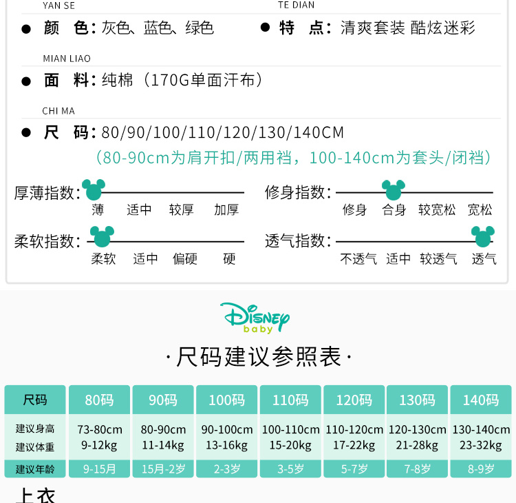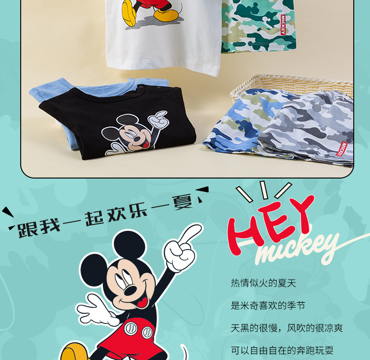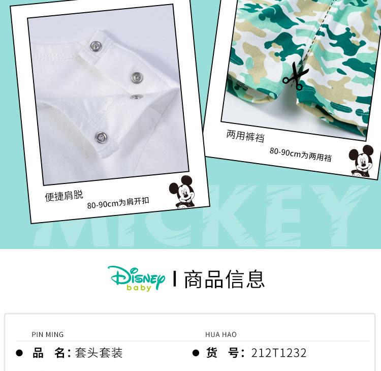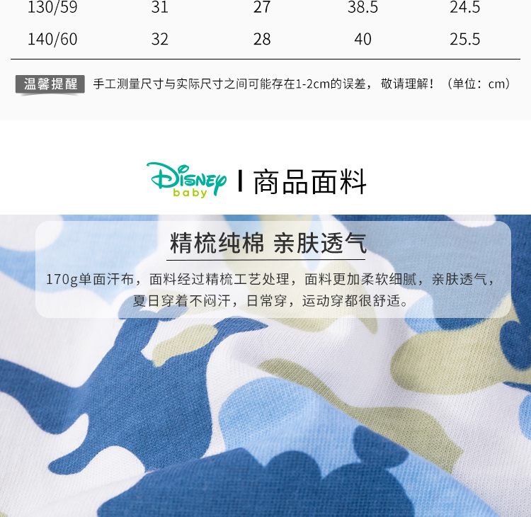 迪士尼童装男小童套装儿童夏季新款小孩短袖T恤短裤两件套帅212T1232