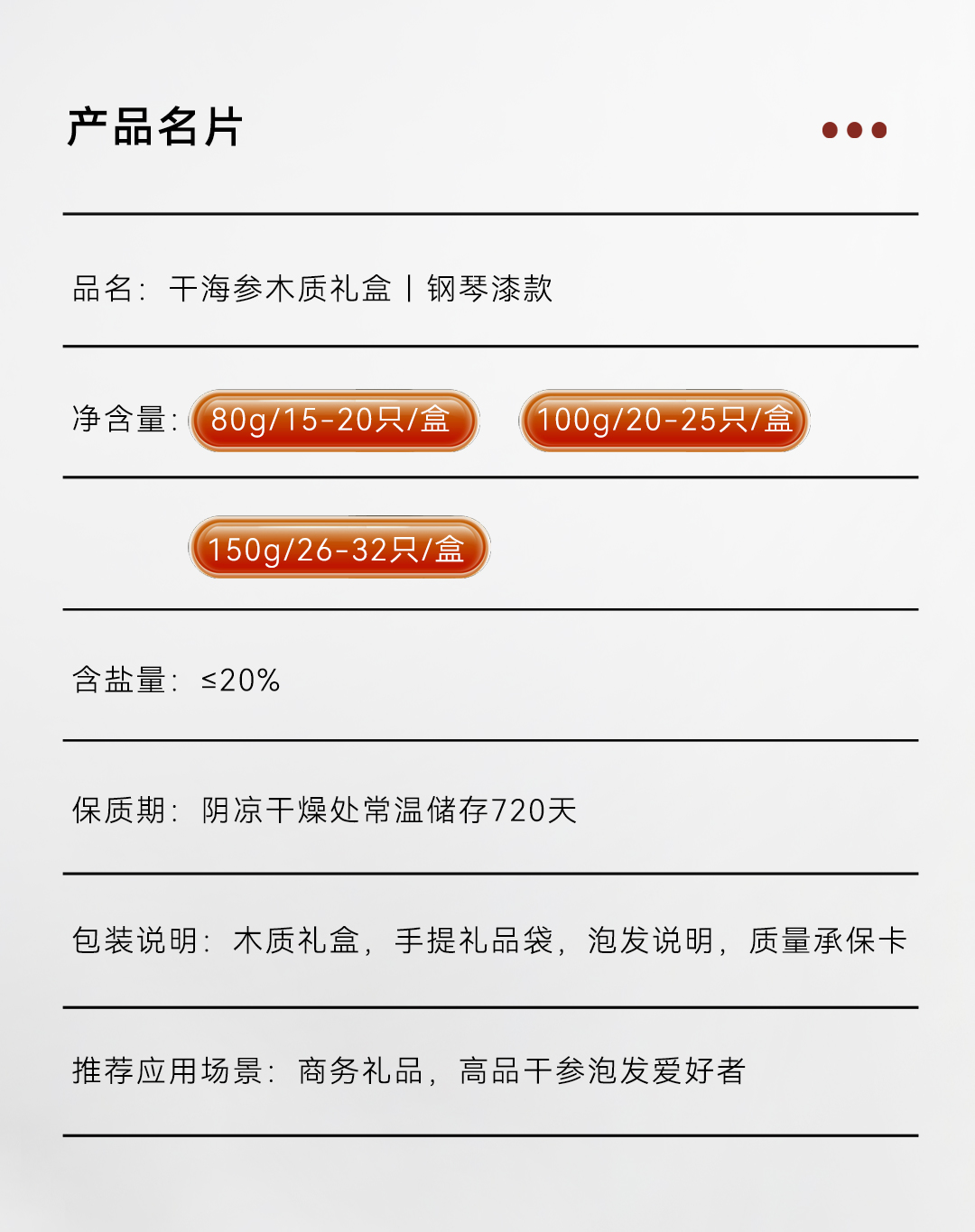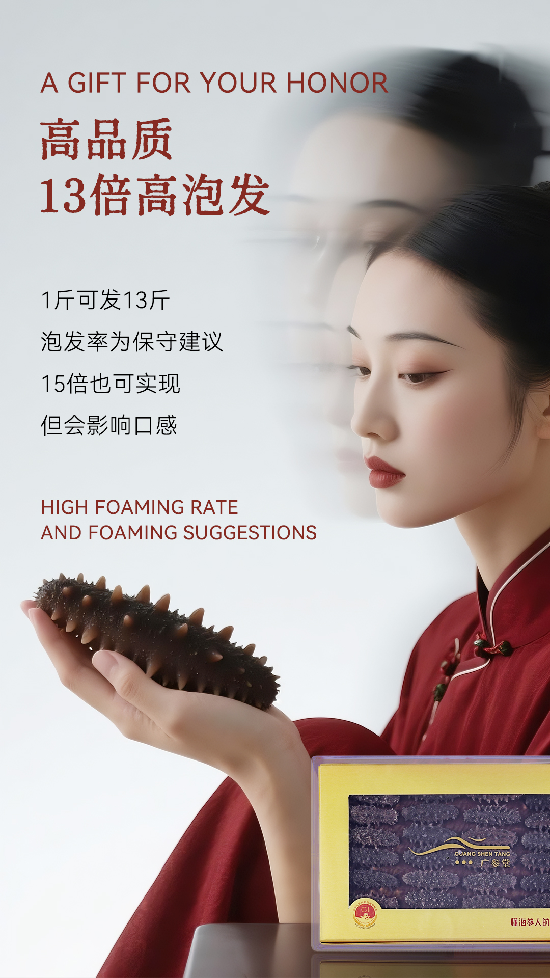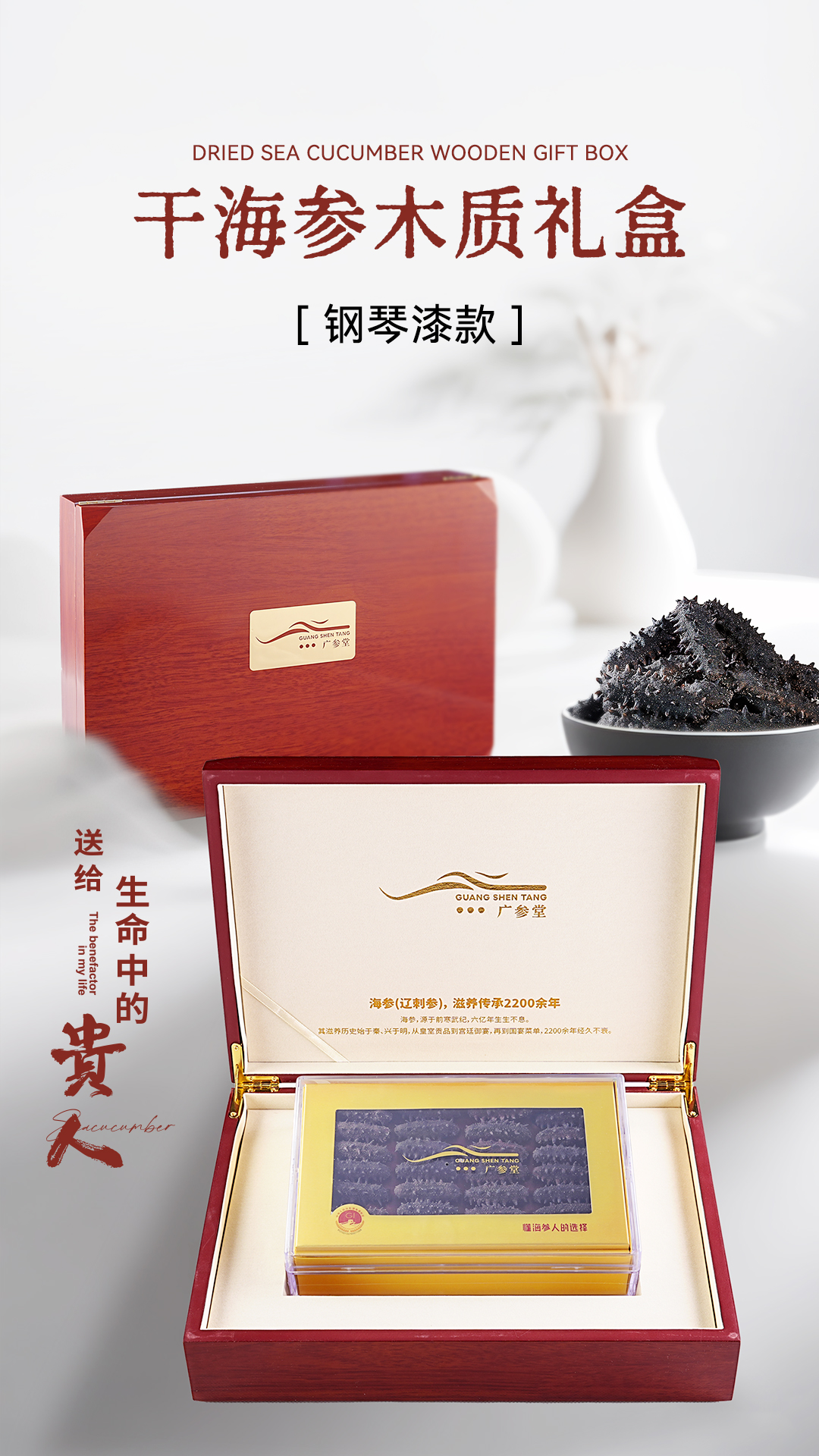 【干海参礼盒】广参堂-红木礼盒 御品大连淡干海参干货 100-500g