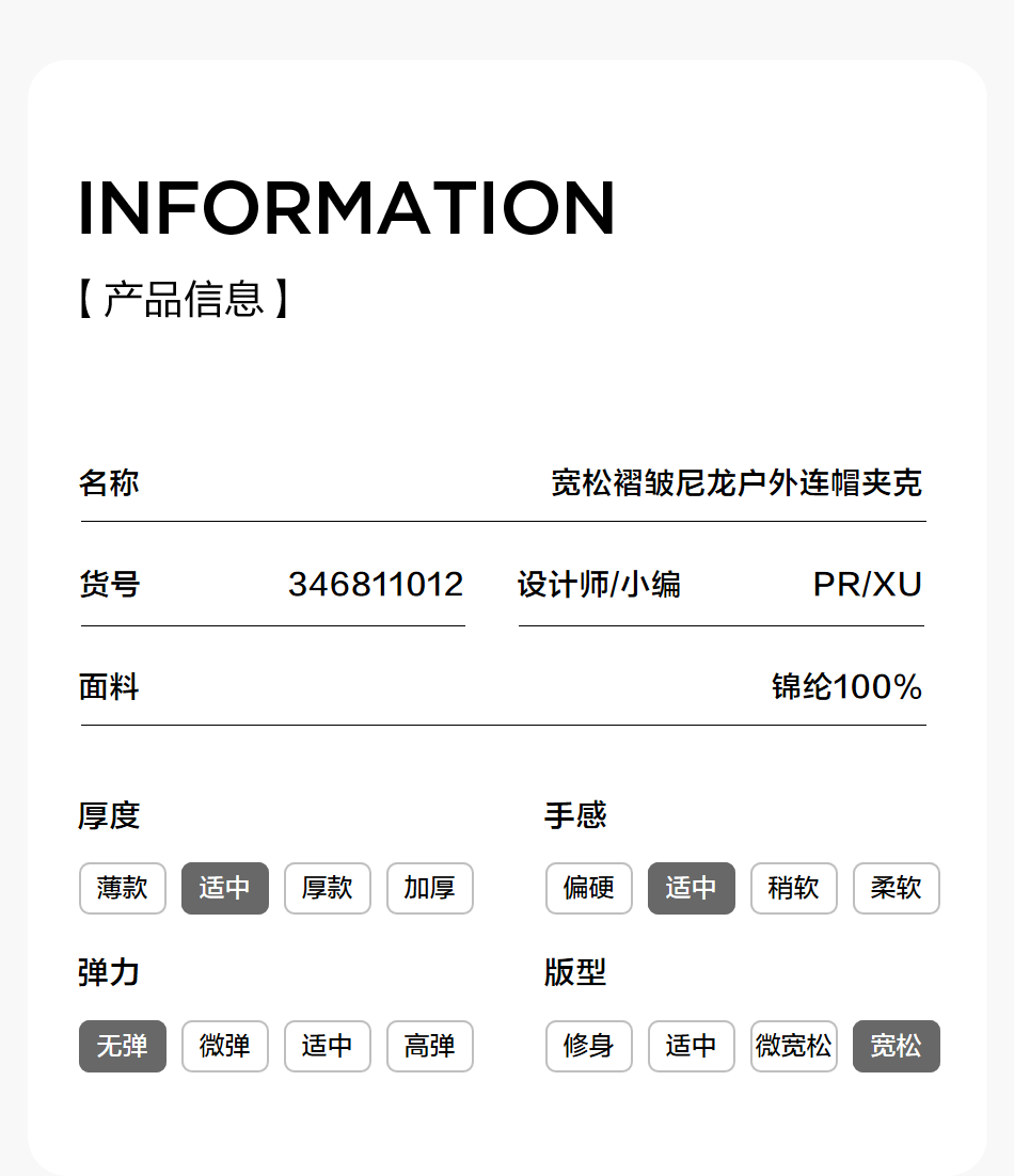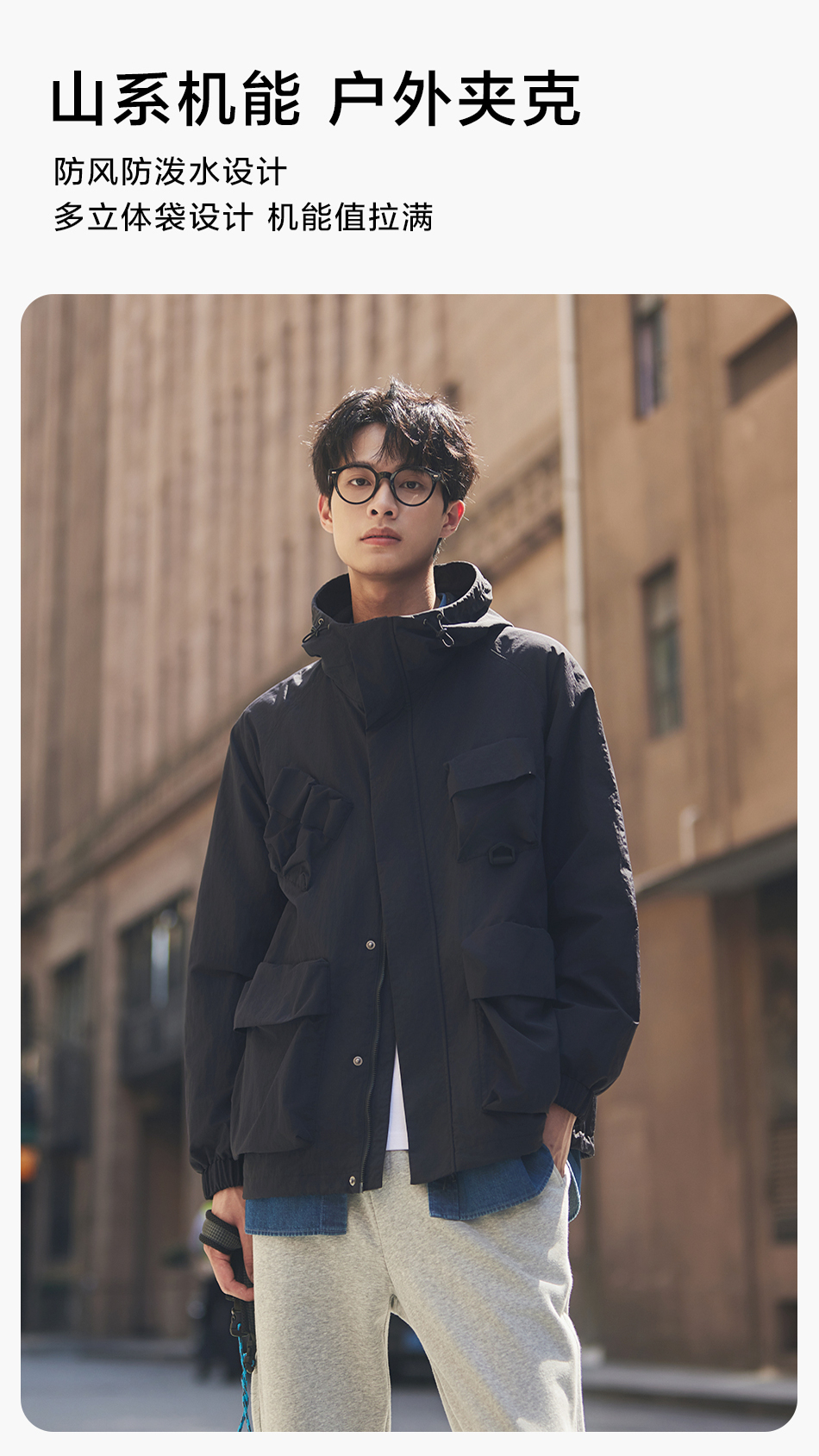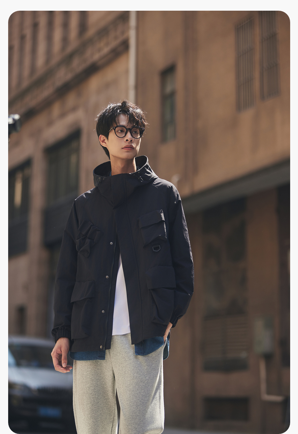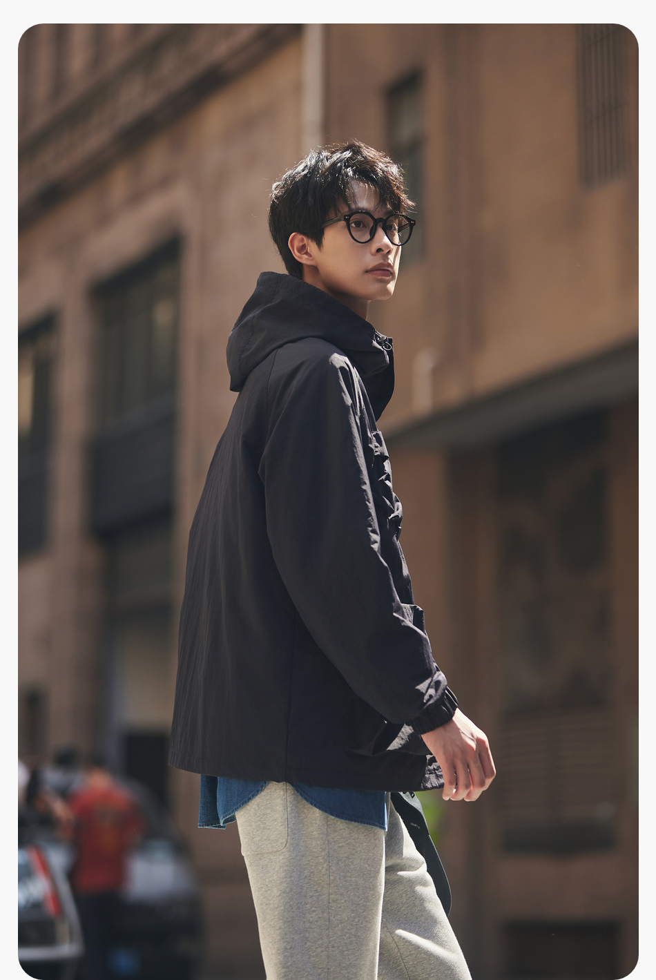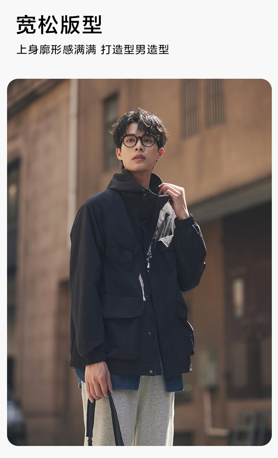 棉仓346811012-宽松褶皱尼龙户外连帽夹克