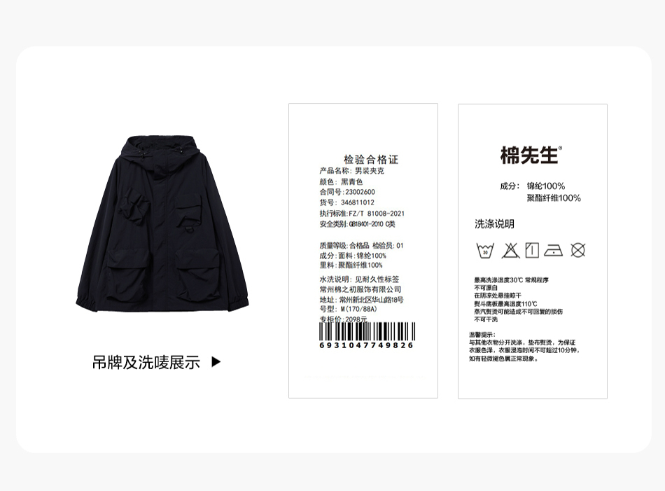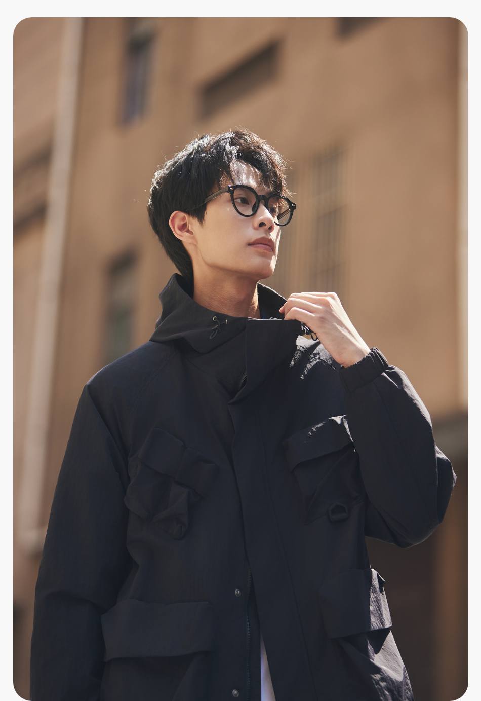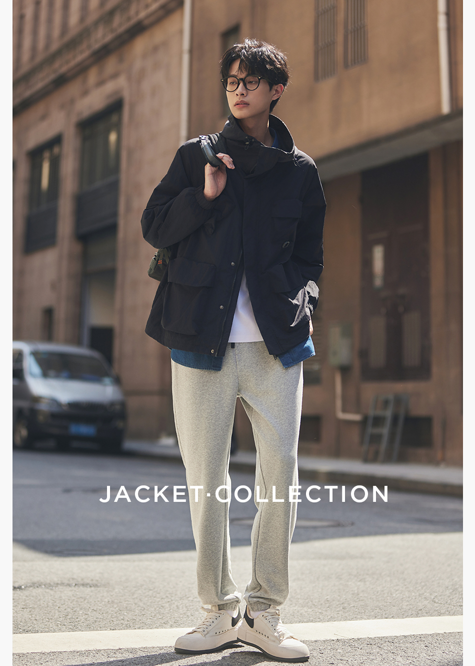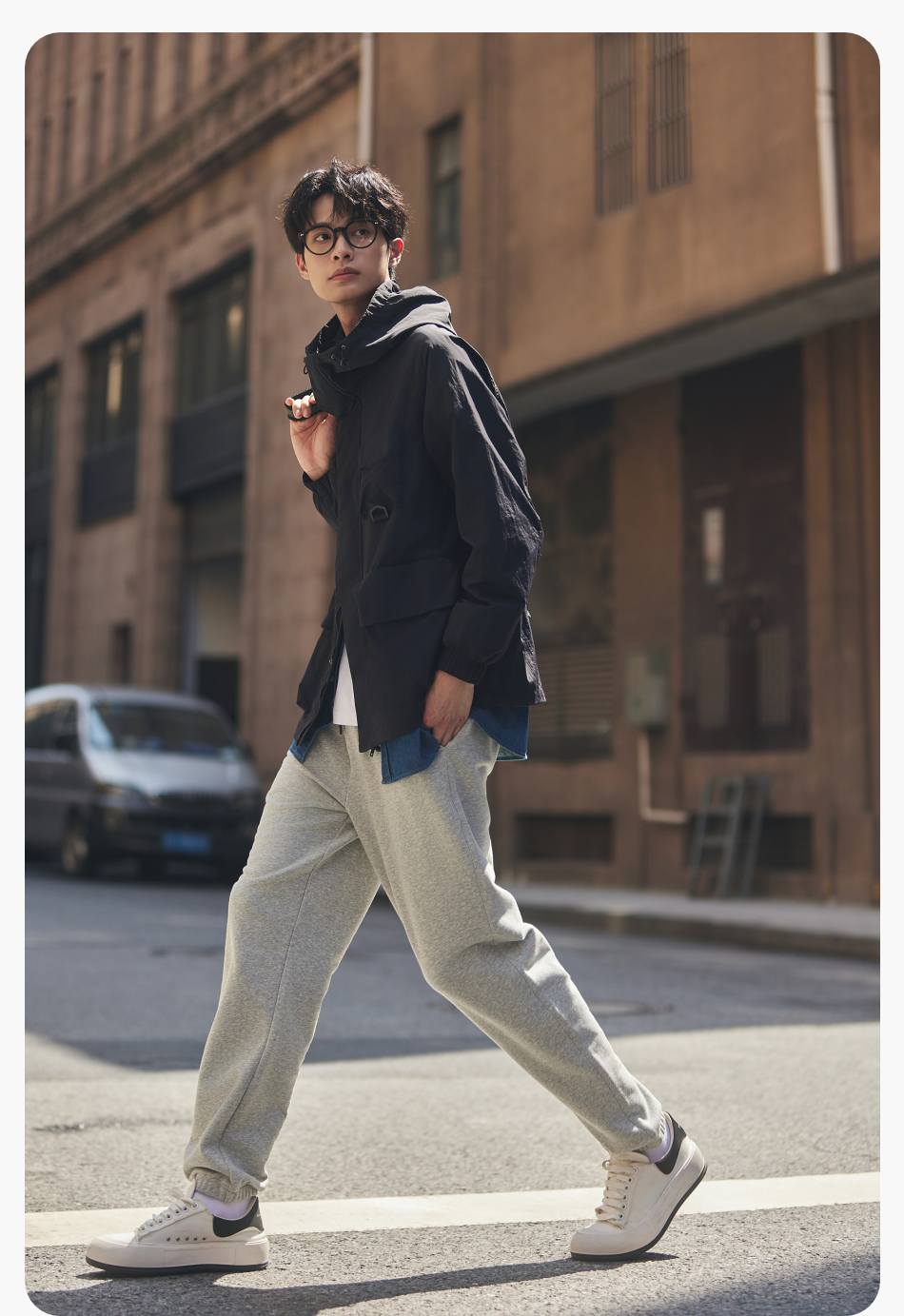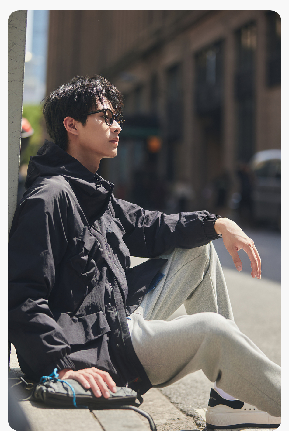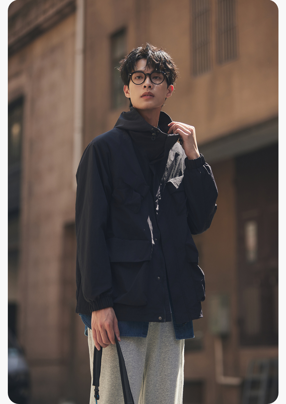 棉仓346811012-宽松褶皱尼龙户外连帽夹克