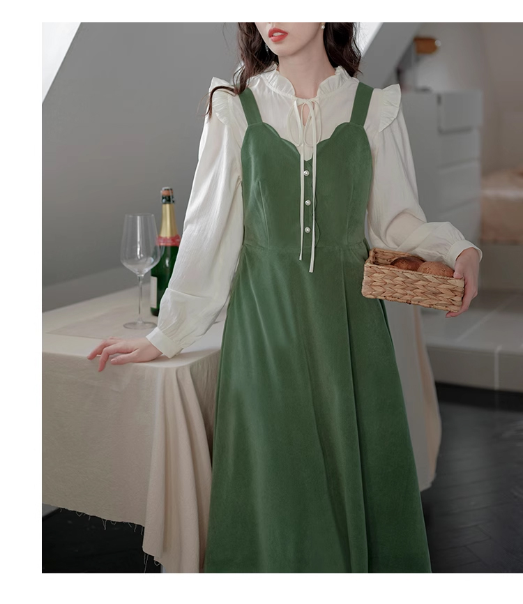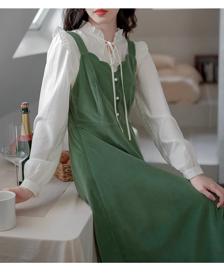 裁缝学苑AQ234复古连衣裙纸样女装新款灯芯绒衬衫背带裙套装打板