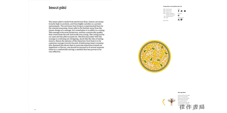 Sausage of the Future takes the reader on a journey through all the building blocks of a sausage. It stops along the way to explore issues like moistness, flavoring, glue and preservation. The publication catalogues different types of sausages and presents lesser-known ingredients, carefully selected for their potential regarding the future. In our days, according to the Food and Agriculture Organization (FAO), we are facing a serious shortage of protein-rich-food. The reason is the overconsumption of animal products. Meat, in particular, will be scarce – we need alternatives.
