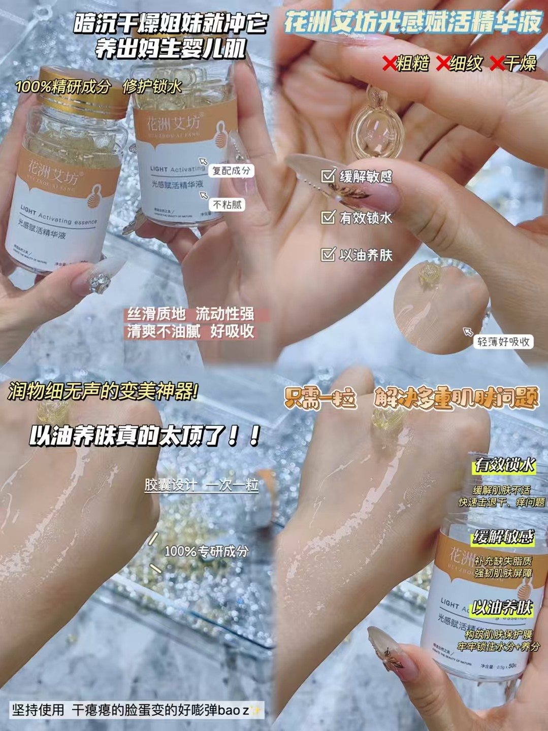 花洲艾坊光感赋活精华液0.5g*50粒精华油