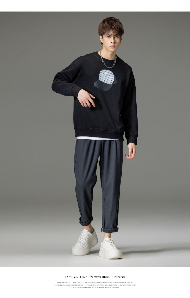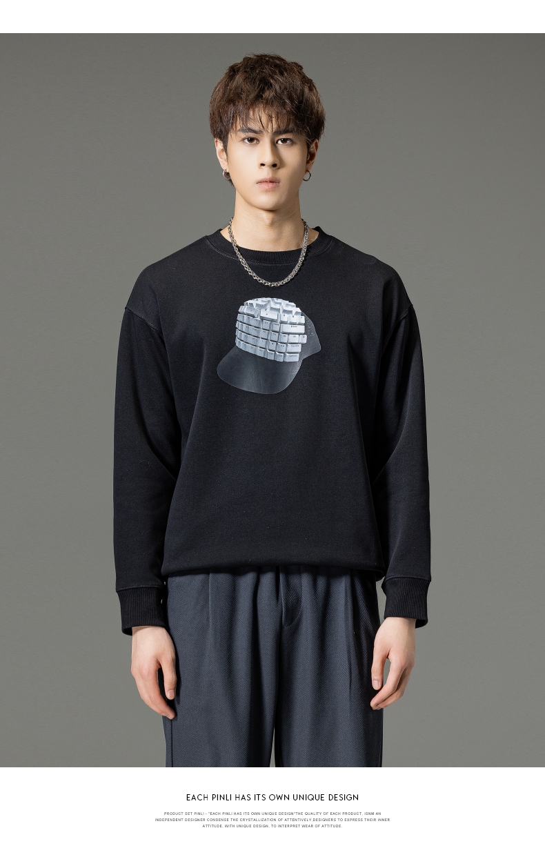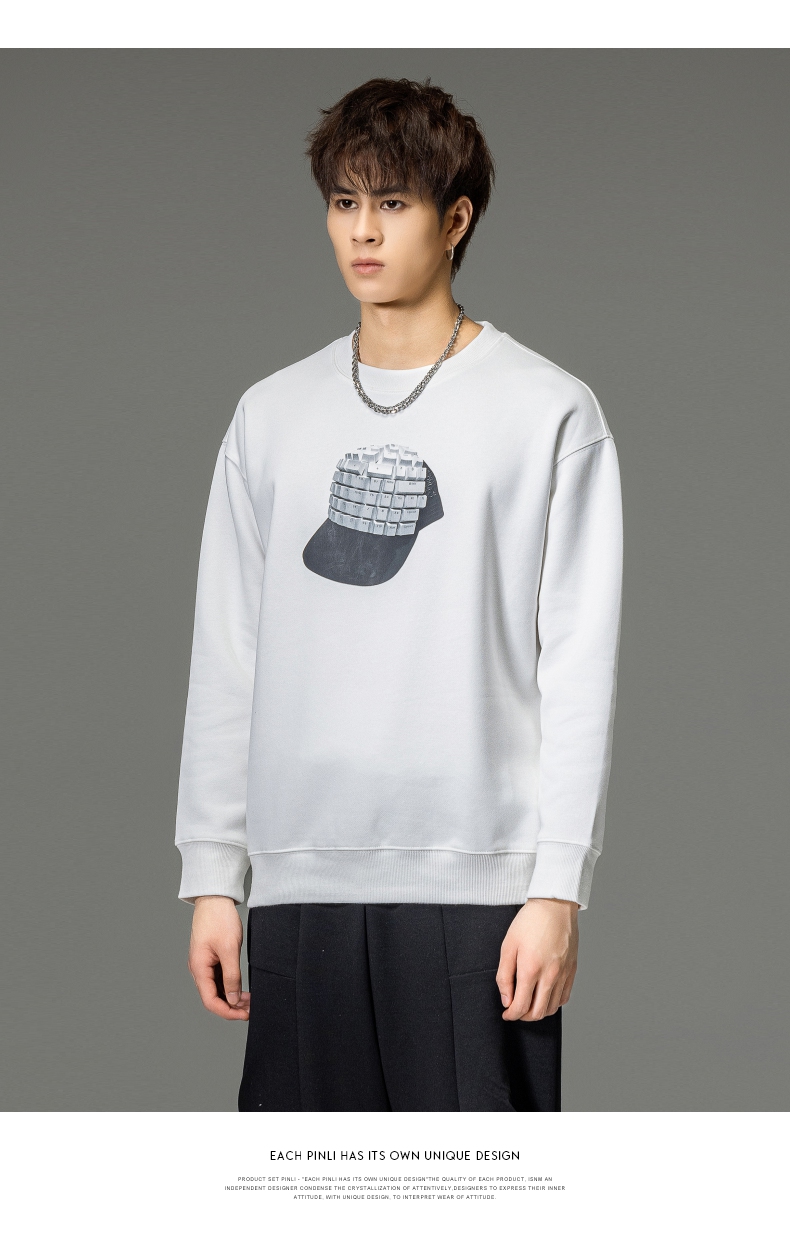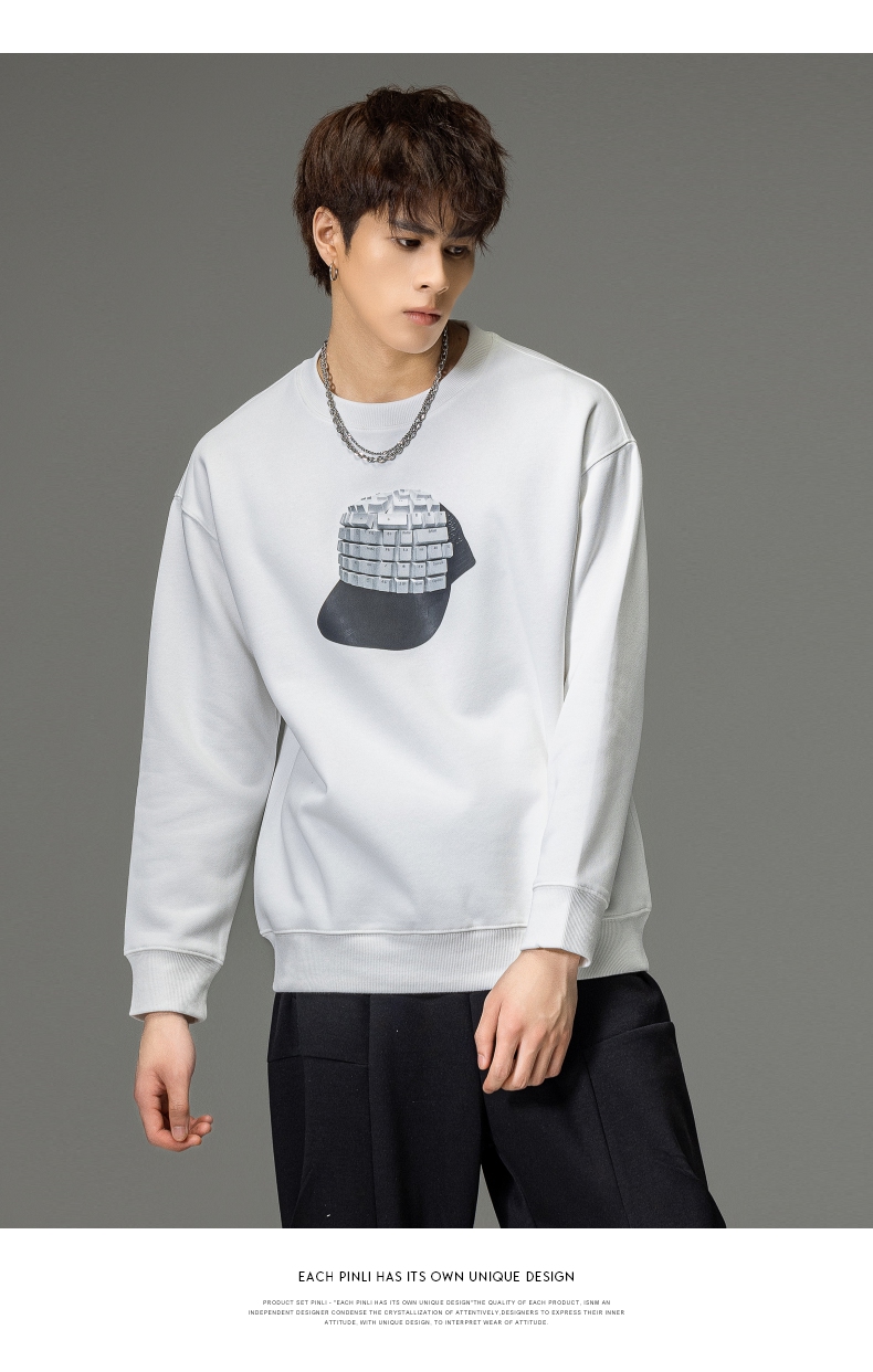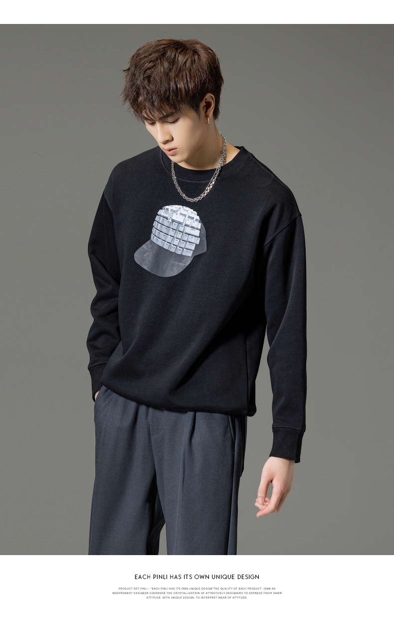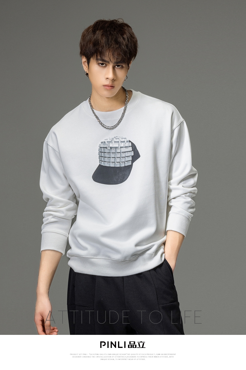 PINLI品立2023秋季新款男士圆领印花落肩袖套头卫衣潮BG233109002