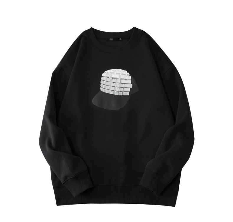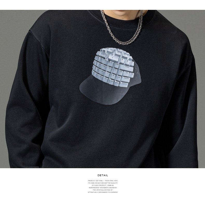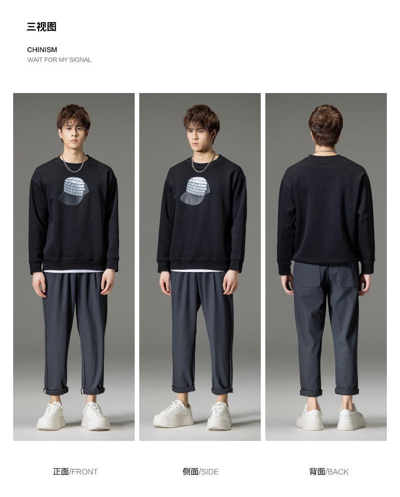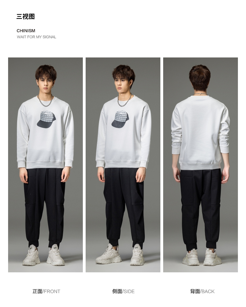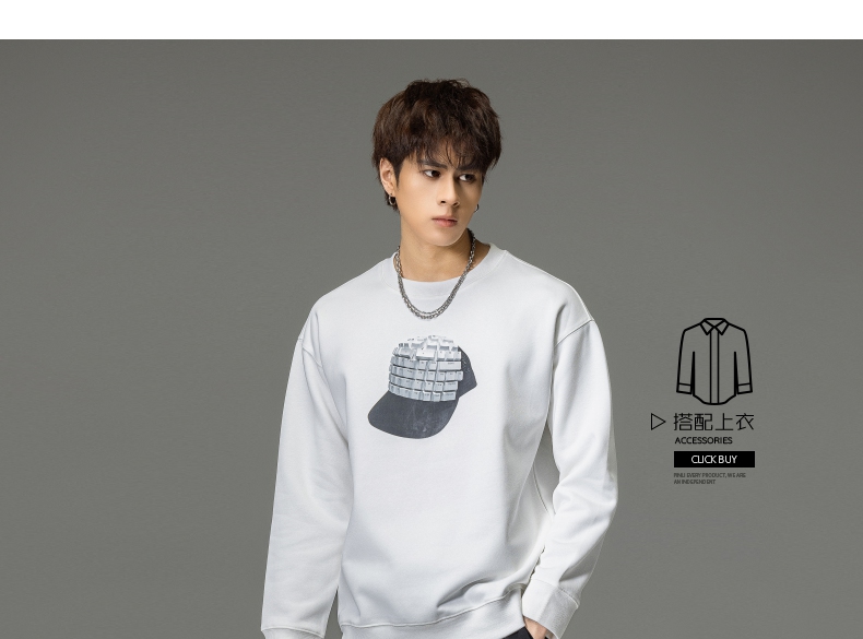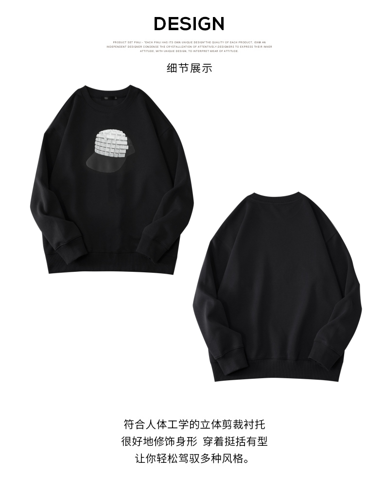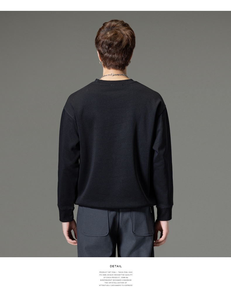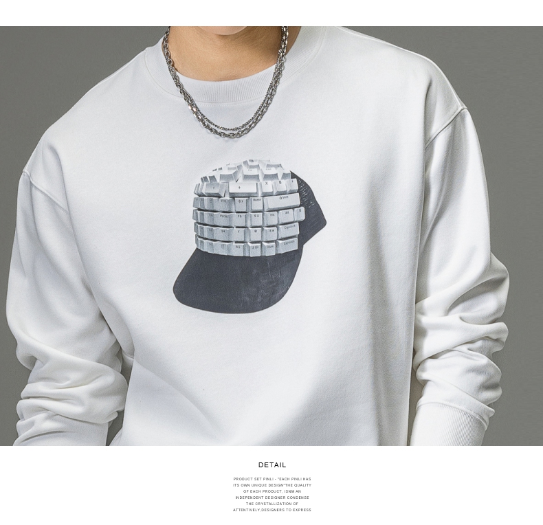 PINLI品立2023秋季新款男士圆领印花落肩袖套头卫衣潮BG233109002