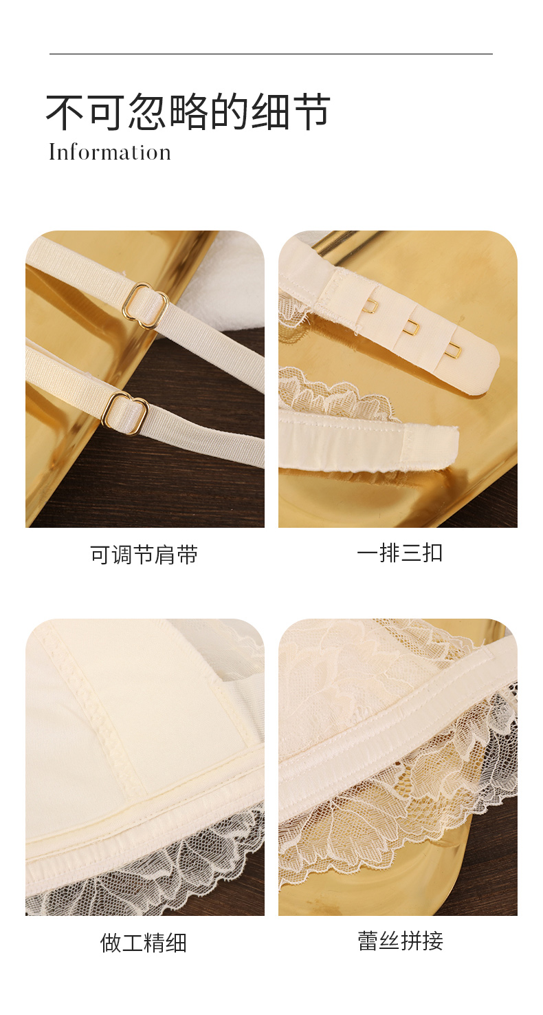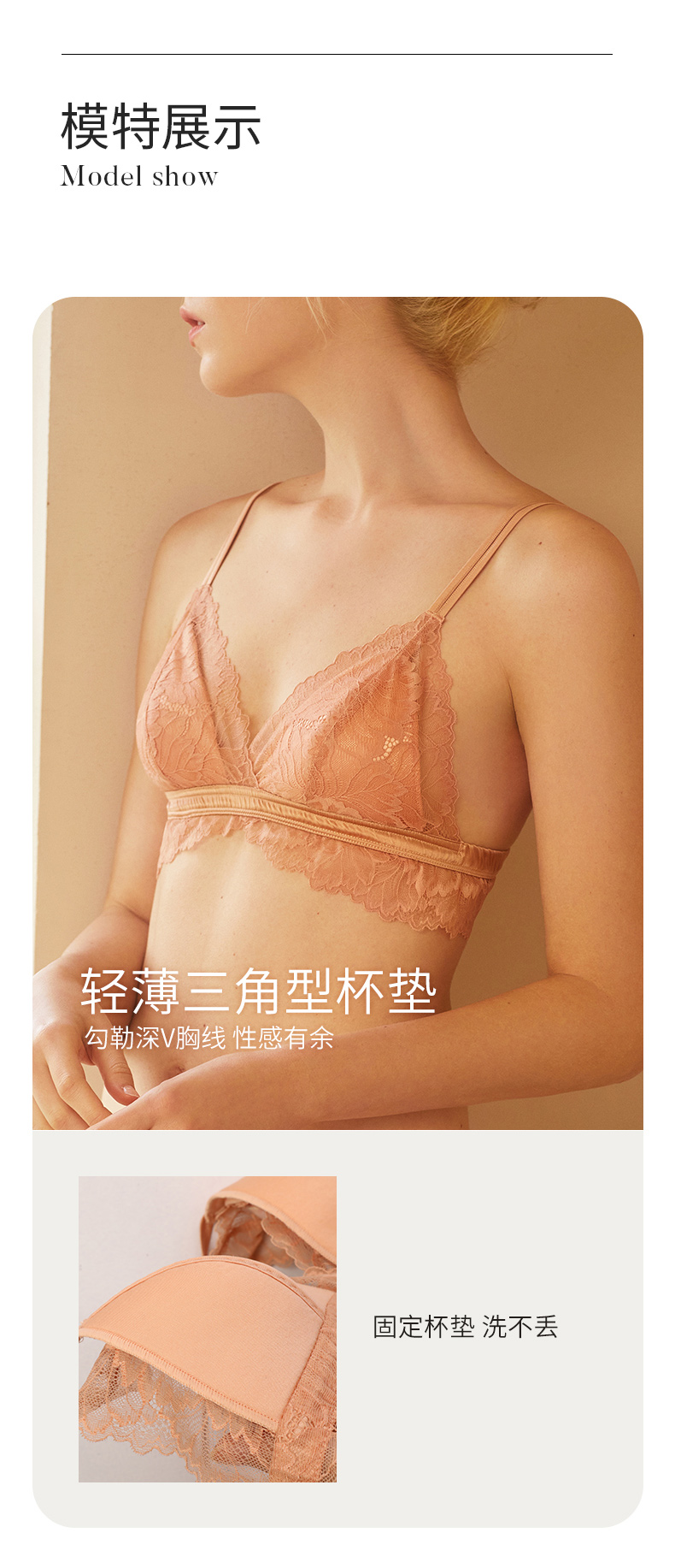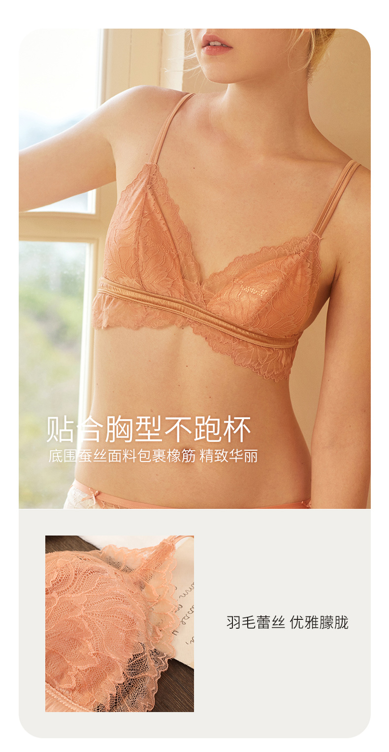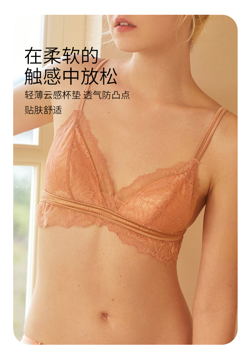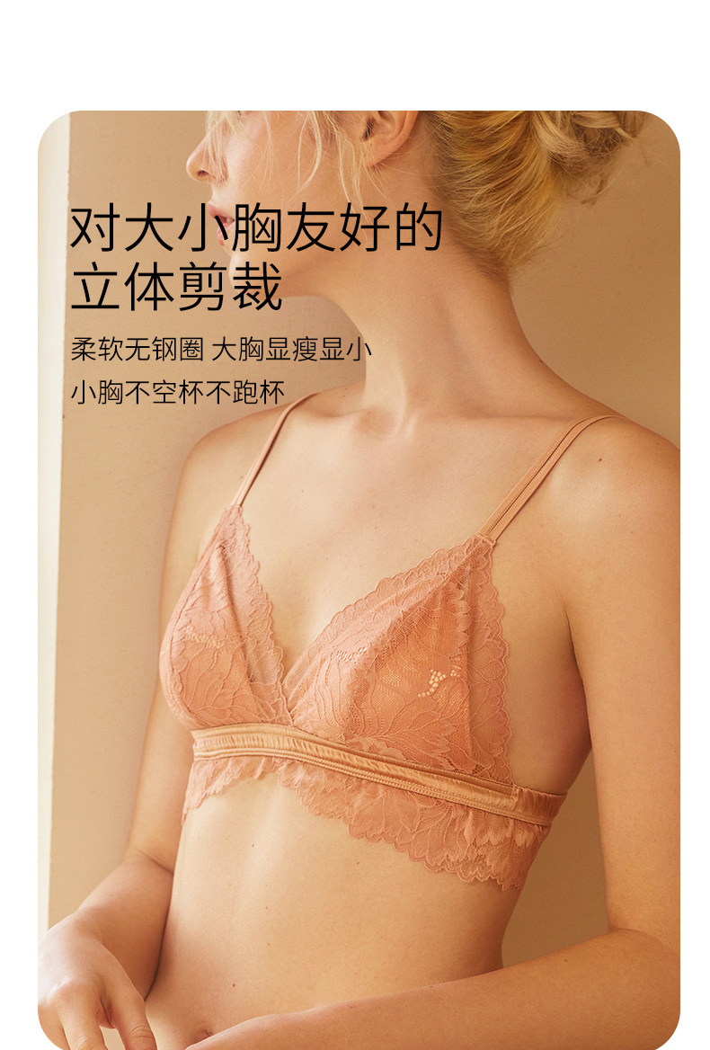 金三塔闲暇时光 法式蕾丝三角杯内衣薄真丝无钢圈小胸文胸套装 NZFBC398