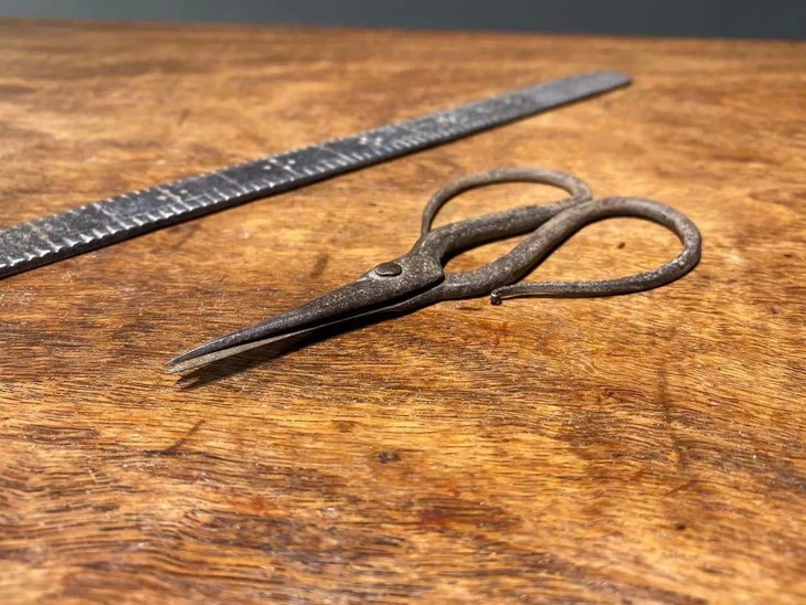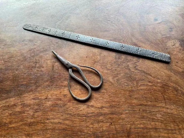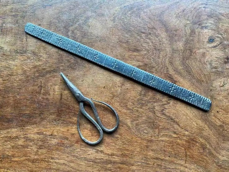 谈到旧时代用具的讲究,免不了要提起文人书房里或是高端老商店的用具,明代开始特别讲究的家具与文房用具,不但取材讲究,在实用性与审美的设计方面也达到了后人难以超越的高度,当时并不风行繁复的纹饰与精细的雕琢,反倒在选择原材料上非常的讲究,由铜炉用的精炼铜、砚台用的石头、实用的铁器,以及家具与文房用具的木头,绝对是选最恰当的材质。今天我们分享的是一件铁值的老量尺与一件老菖蒲剪刀。