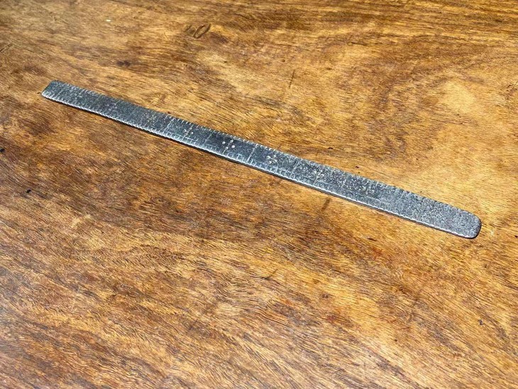 铁尺:长:31.5厘米;宽度:1.9厘米;厚度:0.3厘米;重量:125.4克