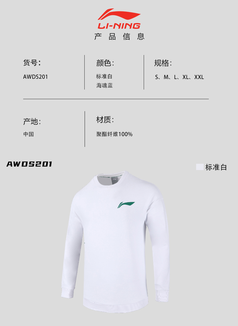 李宁 羽毛球服 男款运动卫衣 飒文化系列 AWDS201