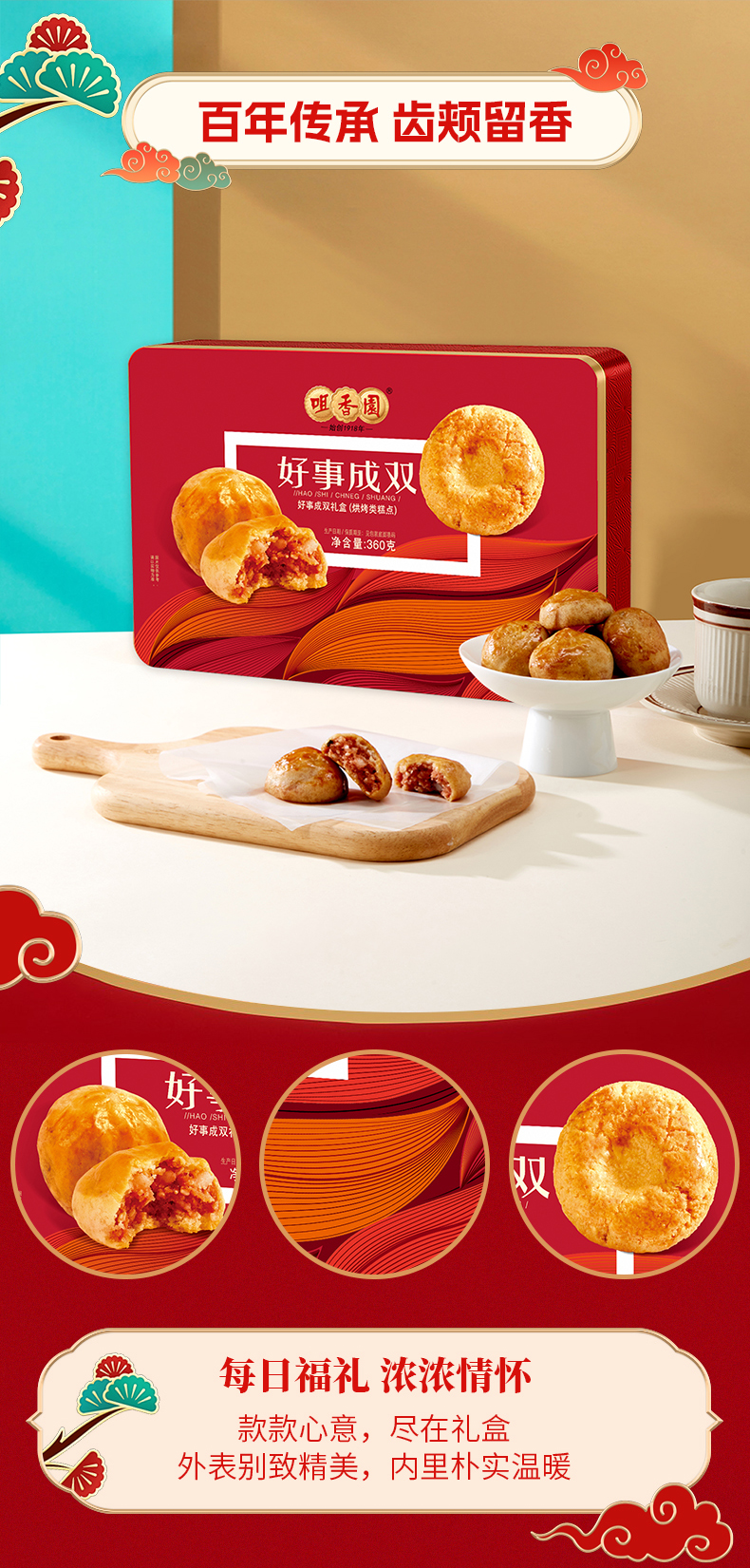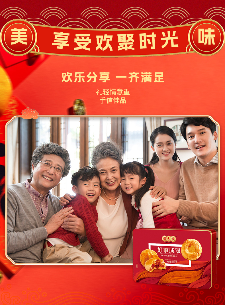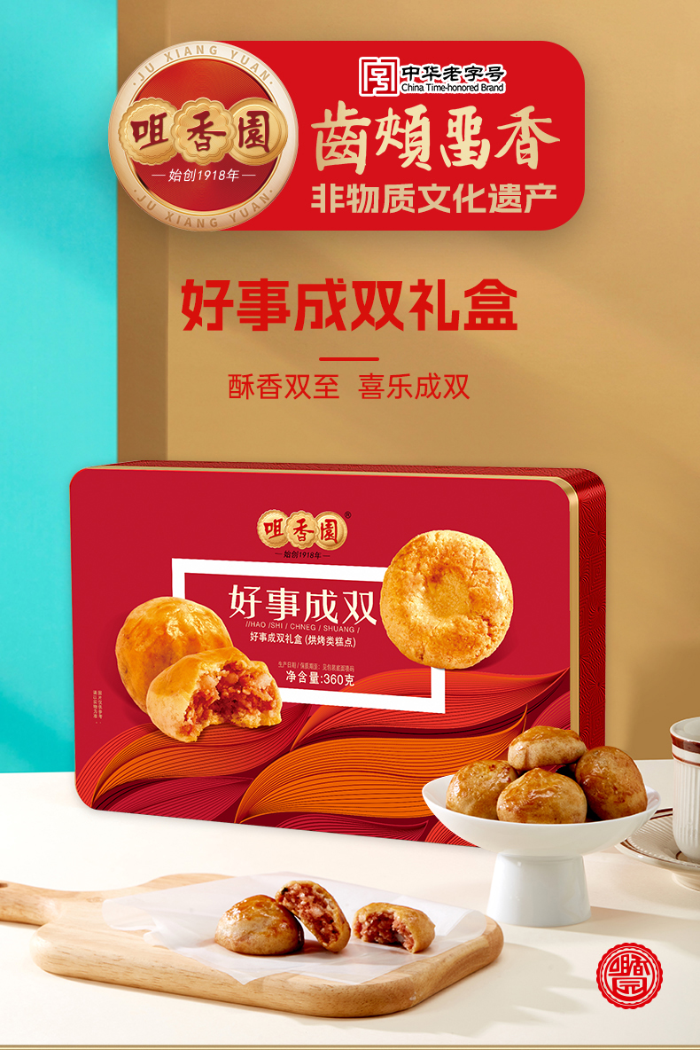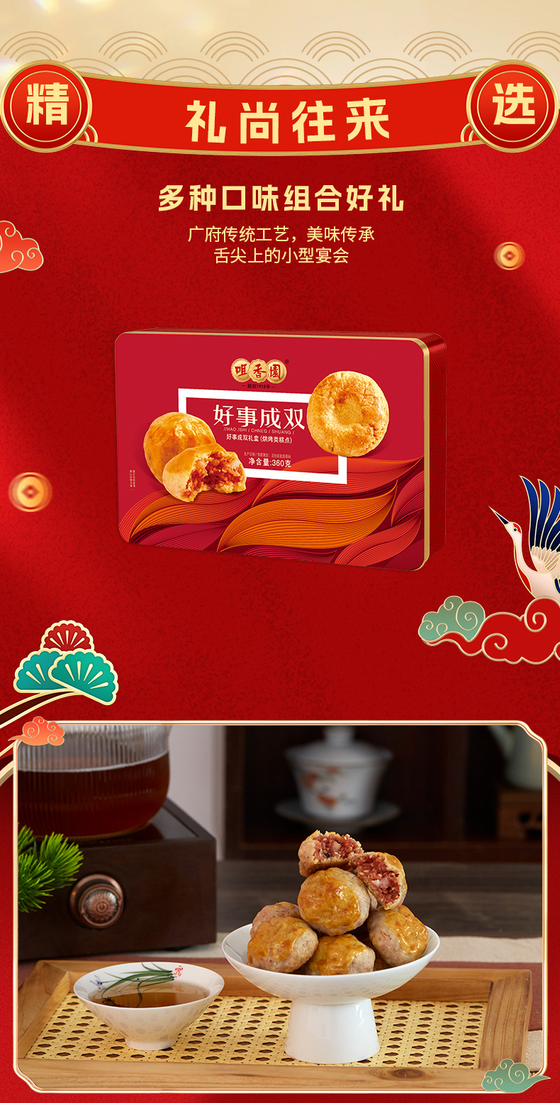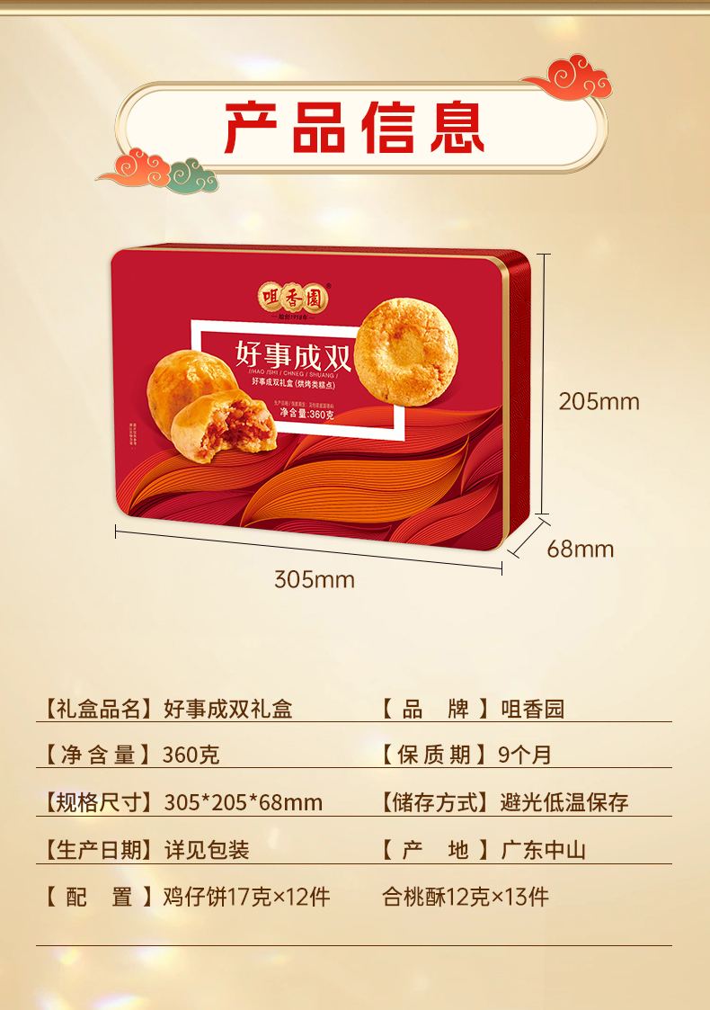 【咀香园杏福好礼礼盒620g】礼盒六盒装 团购送礼手信杏仁饼鸡仔饼曲奇饼