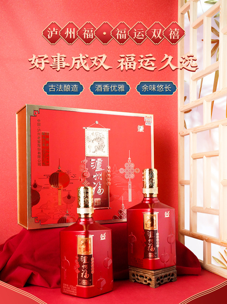 【限时秒杀】52度 泸州福福运双禧礼盒 500ml*2瓶 泸州老窖官方旗舰店