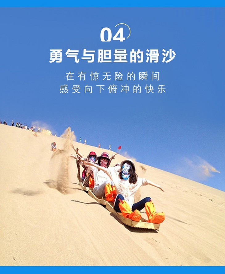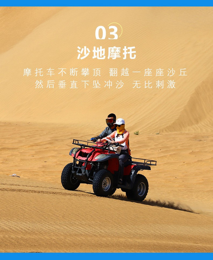 也可以在沙漠自由玩耍、拍照,自费体验沙漠骆驼、越野车、滑沙穿越的激情。
