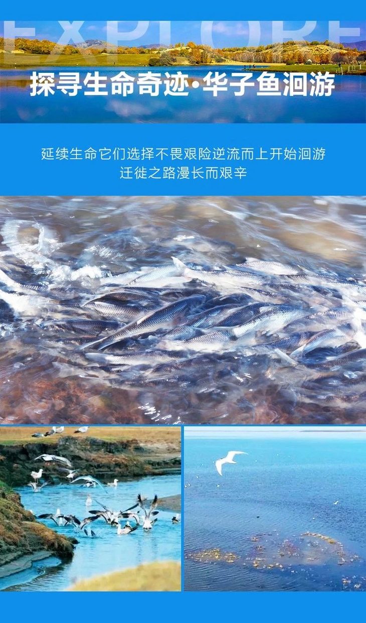 午餐后,我们换乘巴士前往【达里湖】(车程约2小时),探寻生命奇迹——华子鱼洄游!