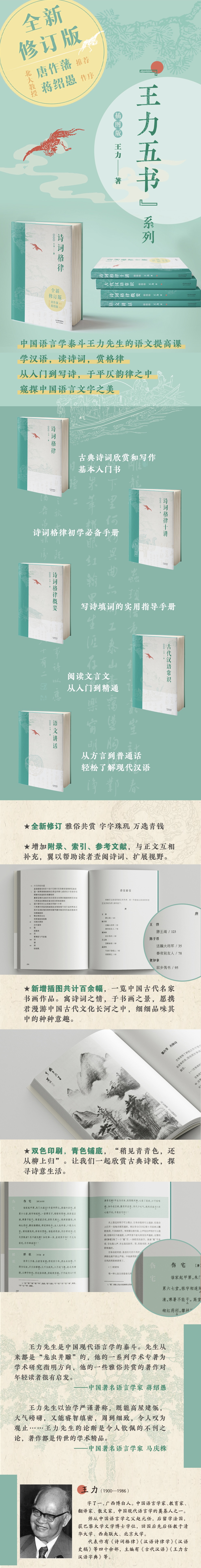 “王力五书”系列 插图版 | 诗词格律 诗词格律十讲 诗词格律概要 古代汉语常识 语文讲话
