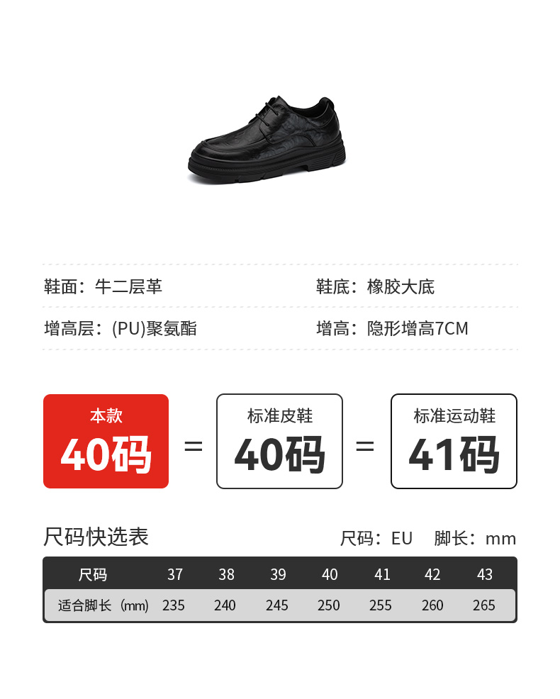 男士增高7cm皮鞋内增高男鞋时尚休闲商务正装英伦系带结婚新郎鞋