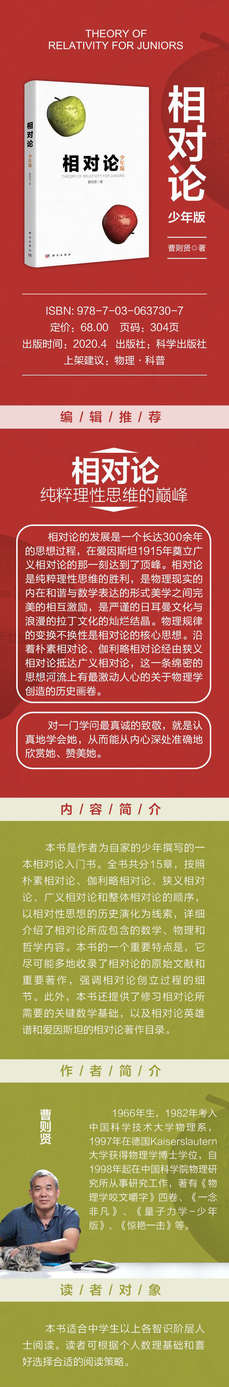 本书是作者为自家的少年撰写的一本相对论入门书。全书共15章,按照朴素相对论、伽利略相对论、狭义相对论、广义相对论和整体相对论的顺序,以相对性思想的历史演化为线索,详细介绍了相对论所应包含的数学、物理和哲学内容。本书的一个重要特点是,它尽可能多地收录了相对论的原始文献和重要著作,强调相对论创立过程的细节。此外,本书还提供了修习相对论所需要的关键数学基础,以及相对论关键人物与事件和爱因斯坦的相对论著作目录。