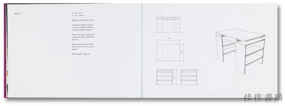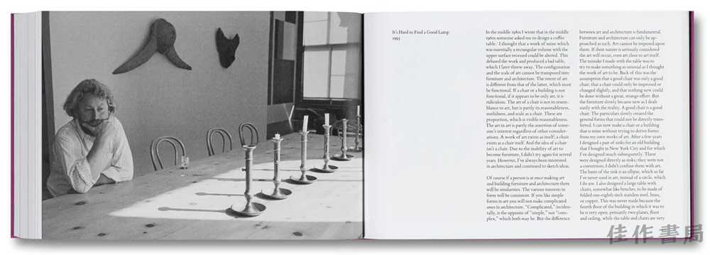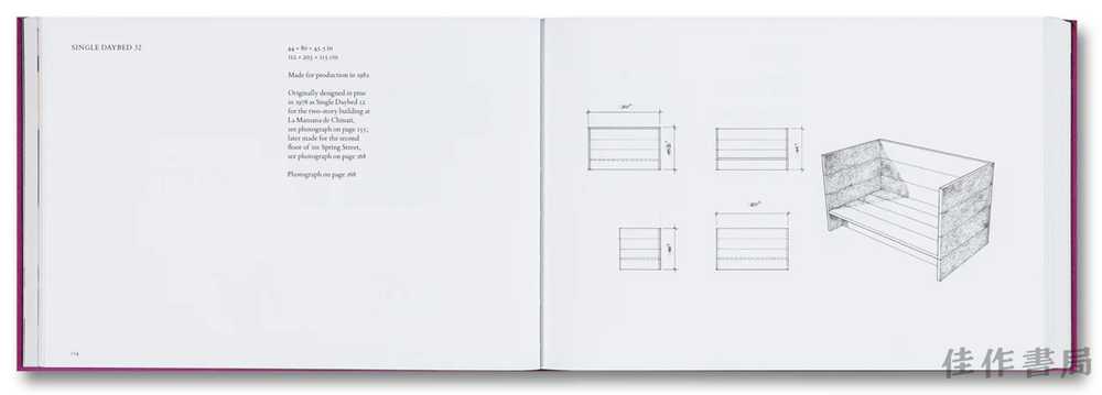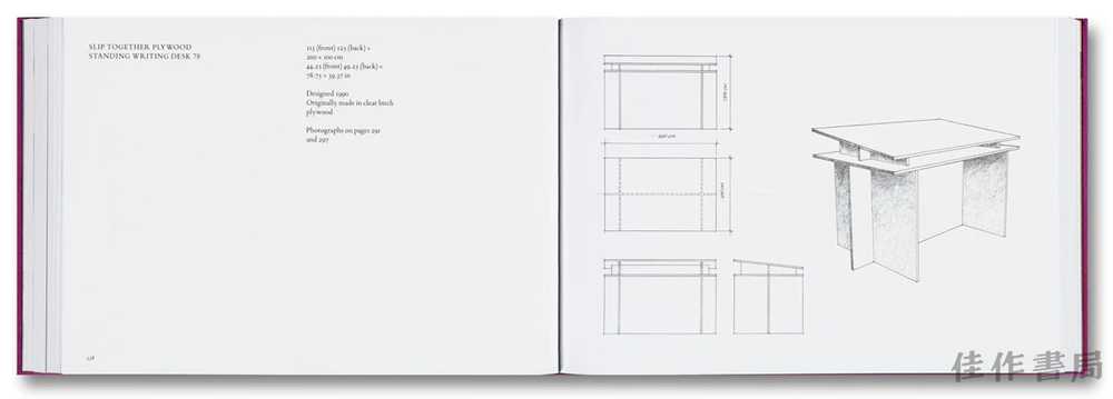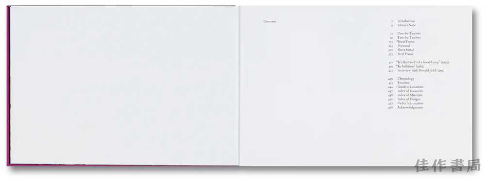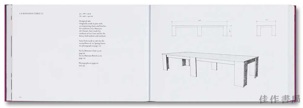 唐纳德·贾德的家具作品包括一百多件,创作时间跨越1970年至1991年,这些作品是为他在纽约斯普林街101号以及德克萨斯州普雷西迪奥县的生活和工作空间设计的。此书向读者介绍了唐纳德·贾德的家具设计,这些设计始于他对纽约斯普林街101号住宅和工作室的翻新,以及后来他在德克萨斯州马尔法为家中添置家具时遇到的困难。这些家具设计体现了他艺术作品中所赞誉的形式的直接性和存在感,同时也提供了一种独特而质朴的实用性。书中通过详细的图纸、材料分解以及彩色照片,展示了这些家具在这些空间中的布置和功能。除了概述他作品中的一个核心方面,唐纳德·贾德家具一书还详细阐述了贾德对功能性、形式的理解,以及他对在批量生产的世界中设计可能性的浓厚兴趣。