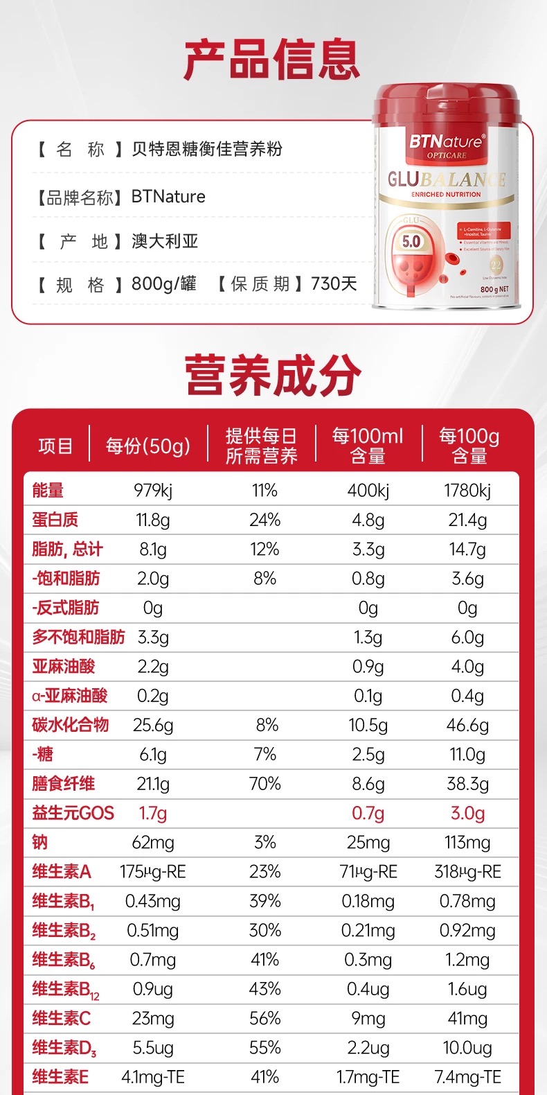 【澳洲进口】BTNature贝特恩康恒血糖平衡营养素 800克/罐