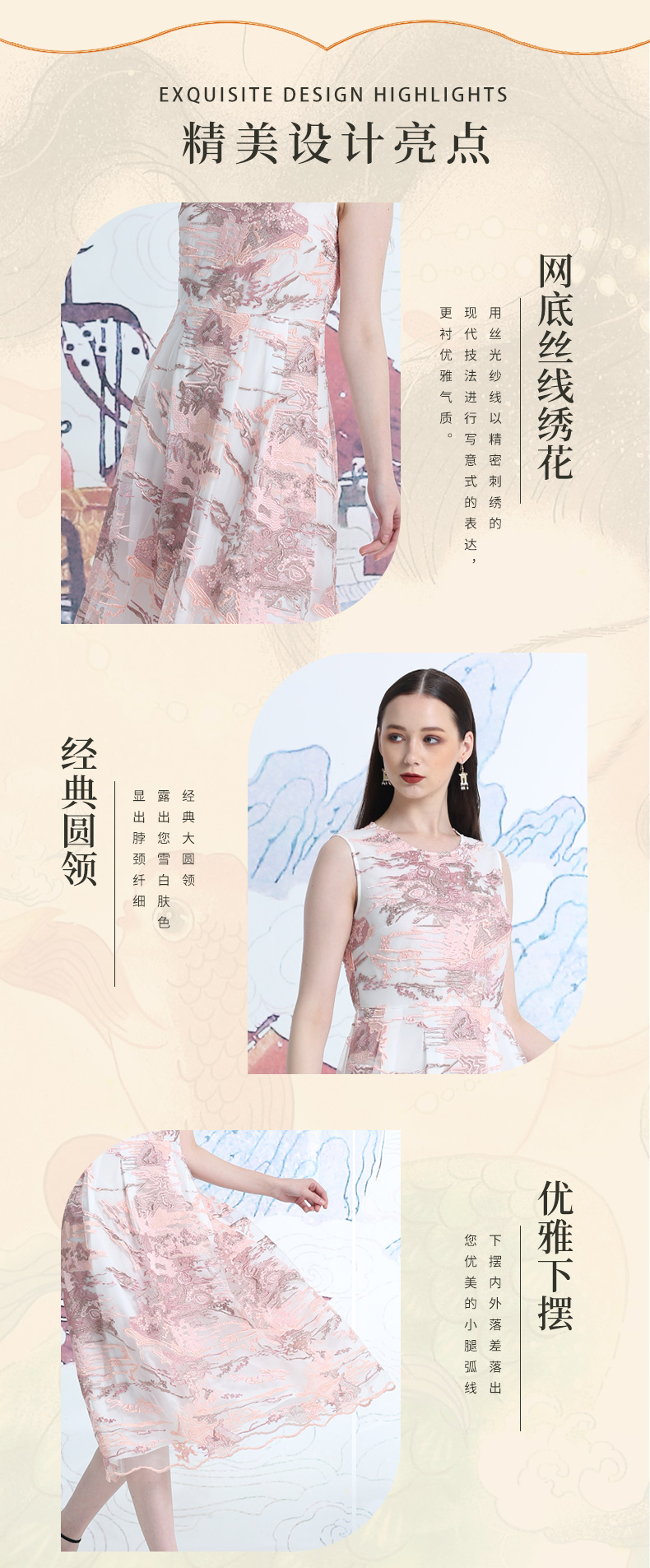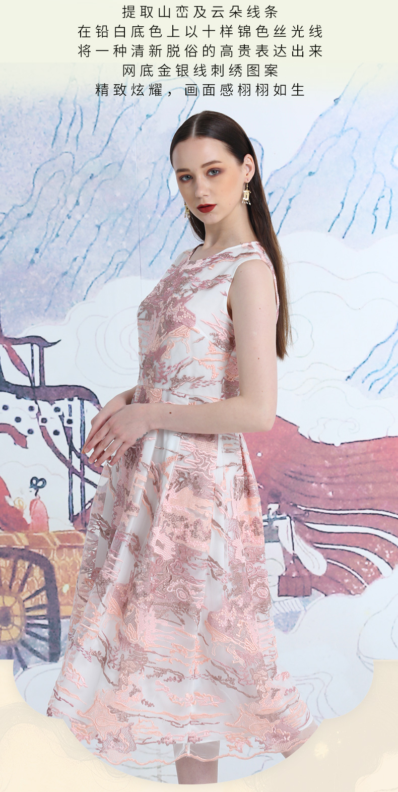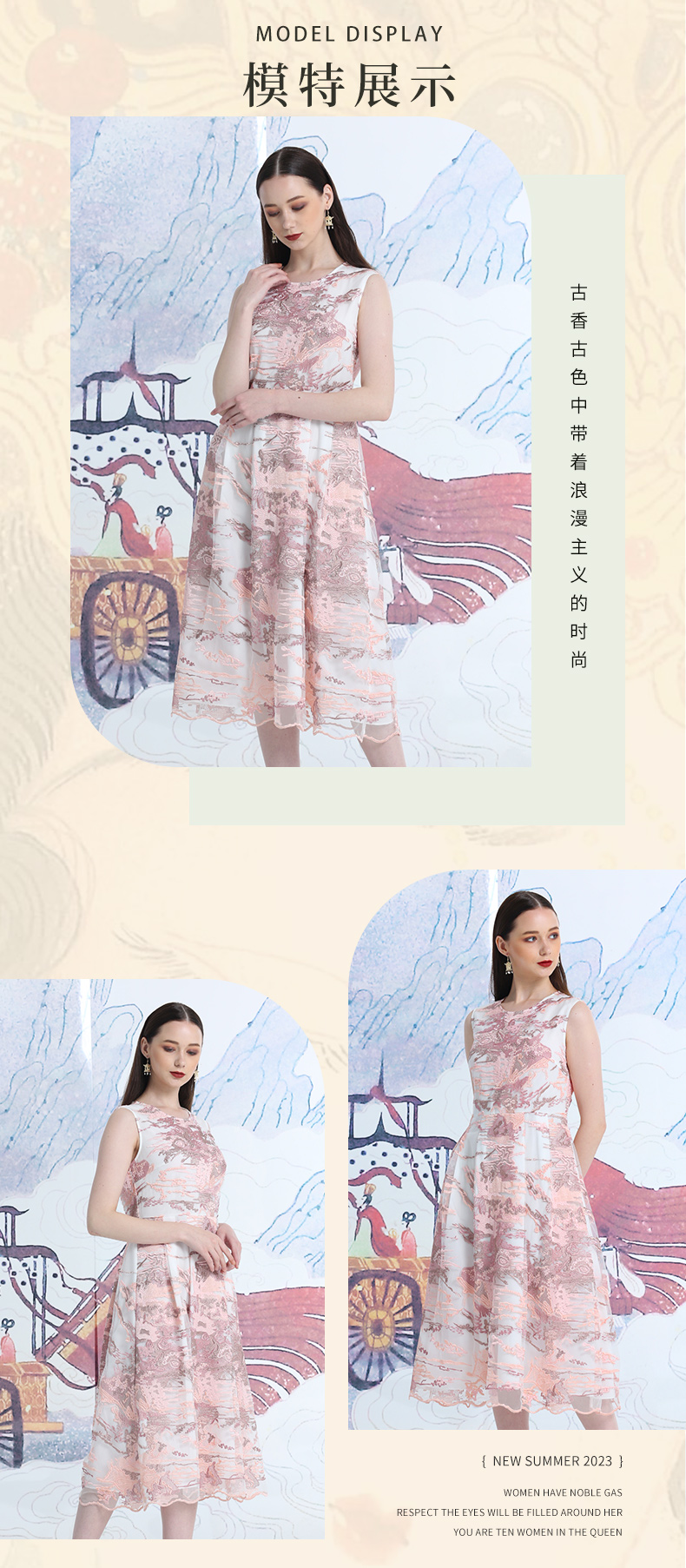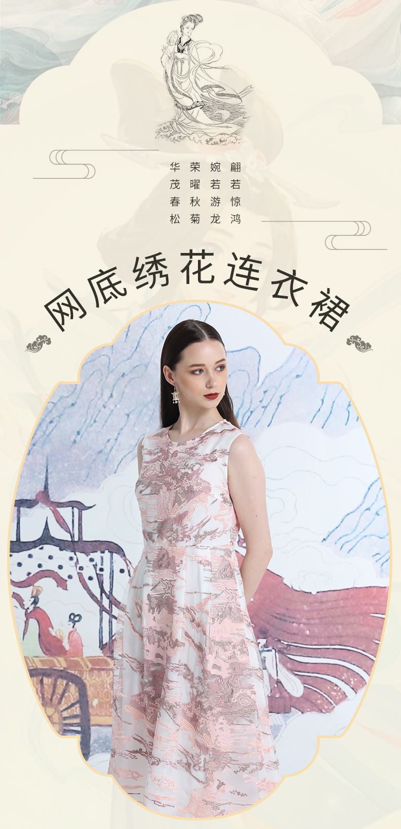 品牌风格:源自千年文学和万年艺术的时装,让你的气质内涵一枝独秀,精彩的品质,华丽的风格,炫耀的视觉,让你的衣品从此与众不同,标记你深厚的文化内涵与艺术气息。