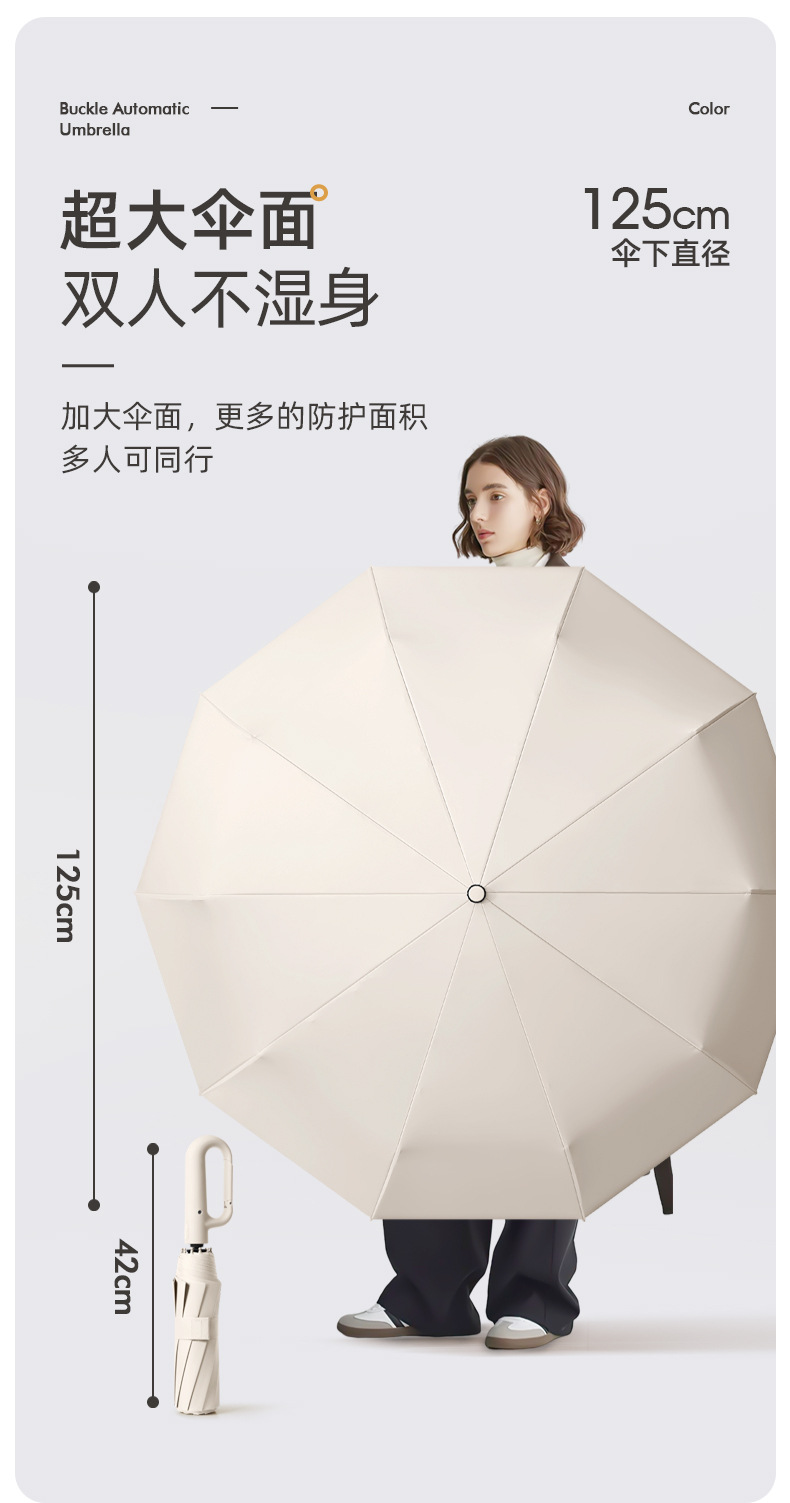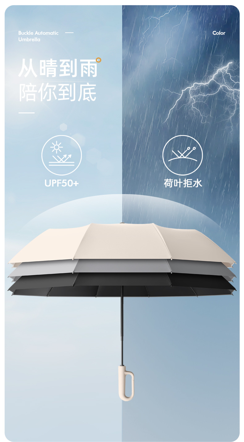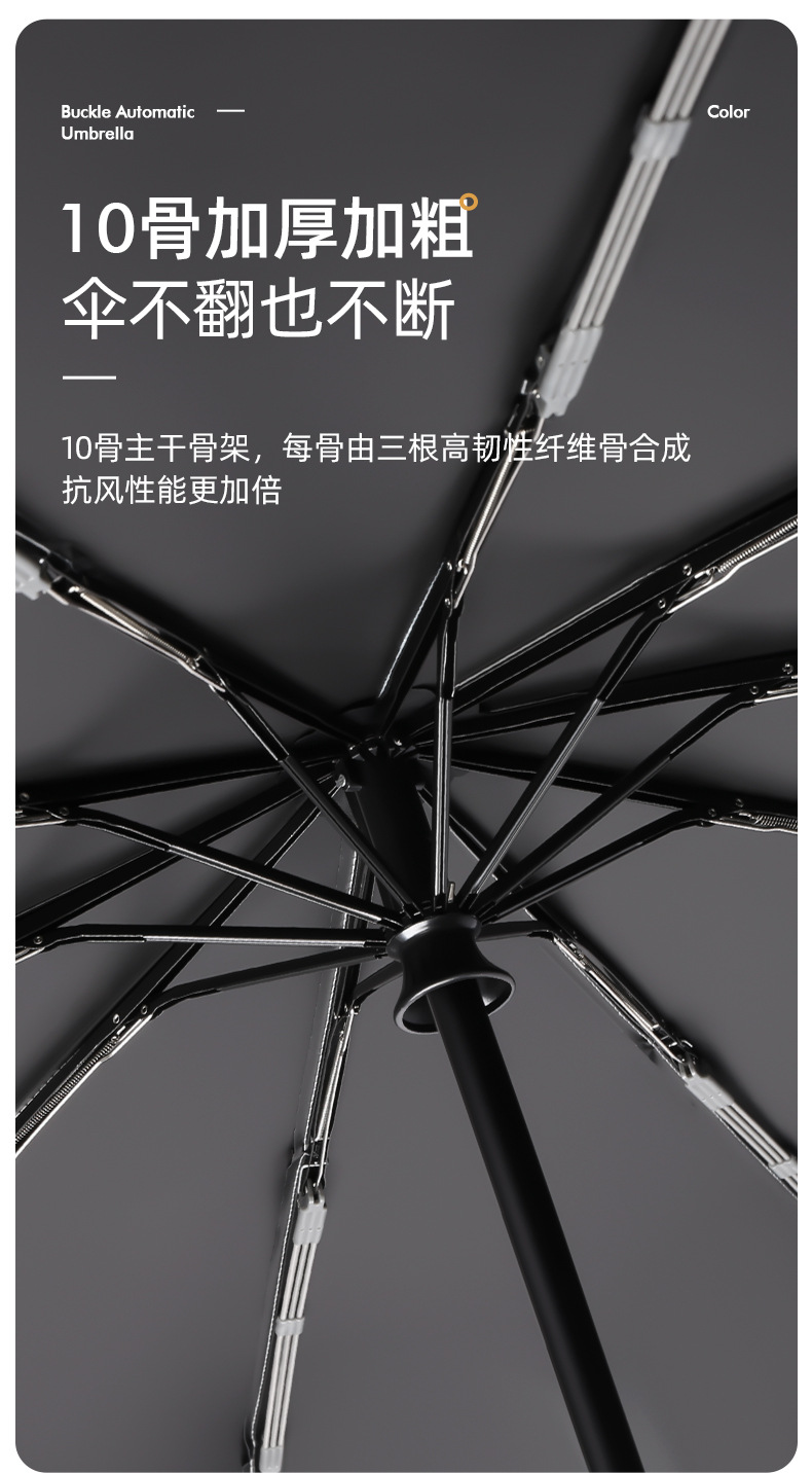 【一键开收 加厚黑胶】环扣设计全自动正向10骨雨伞 加大加固双人伞 商务便携 抗风暴雨 遮阳防晒 晴雨两用