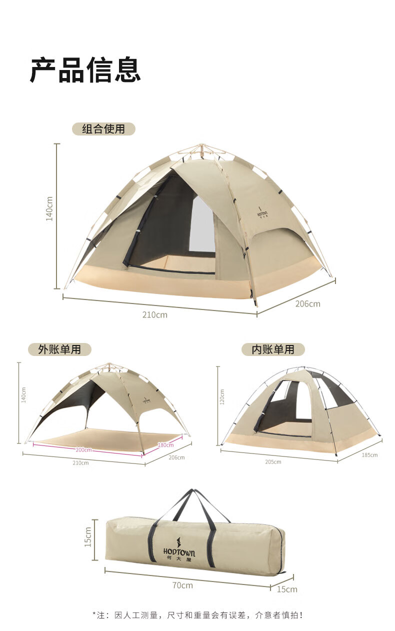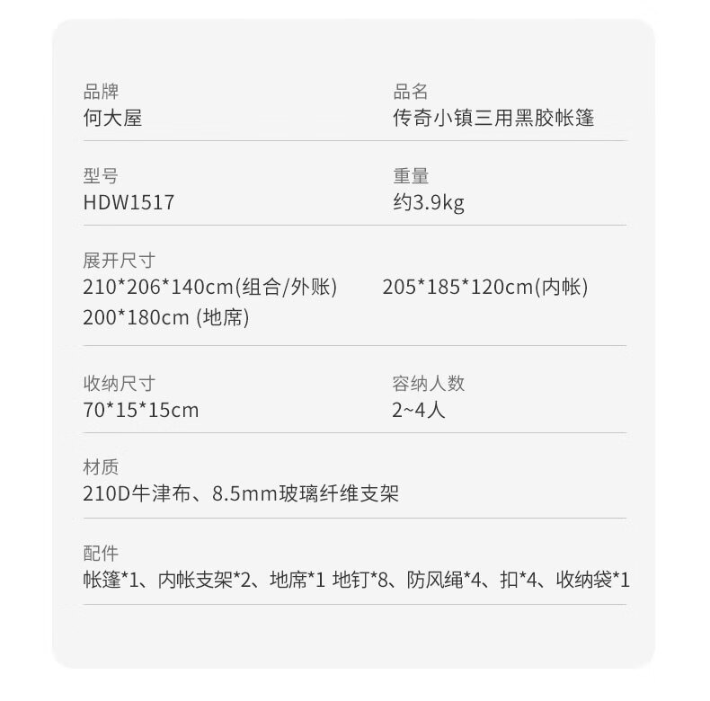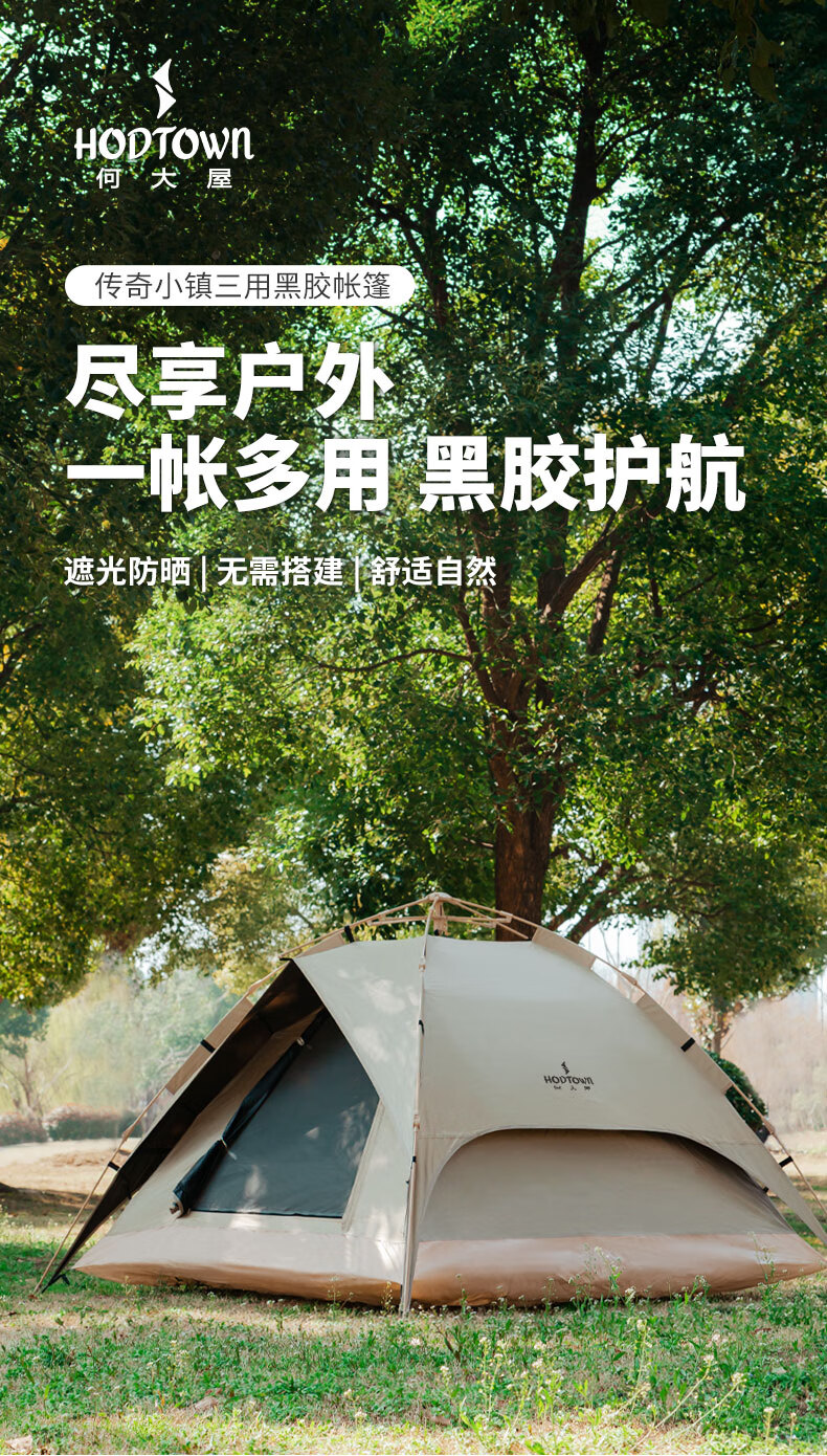 何大屋 传奇小镇三用黑胶帐篷HDW1517【ZXZQ4.0】