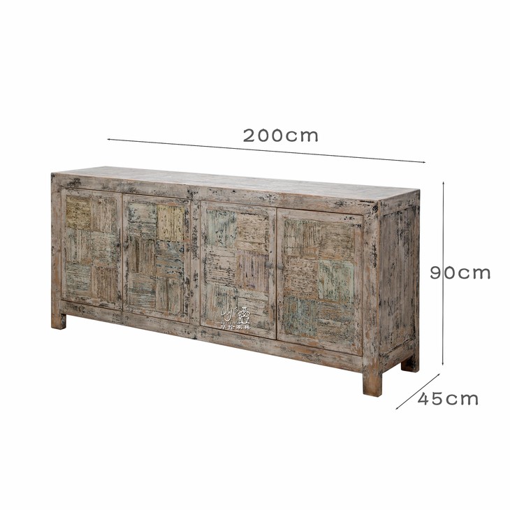 新仿松木仿古家具四门柜边柜玄关柜QB18070019 Newly made Pine wood Cabinet