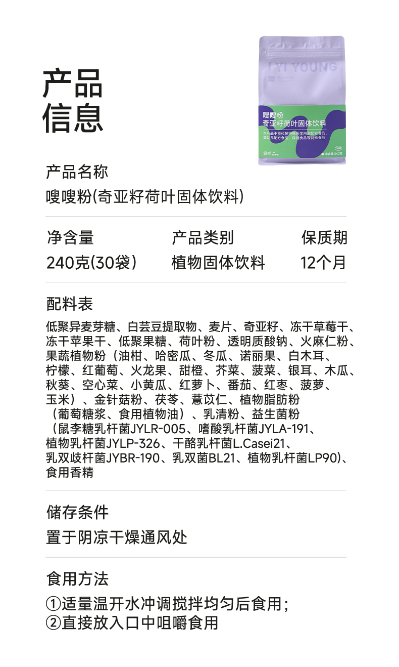 宜样嗖嗖粉奇亚籽荷叶固体饮料营养代餐