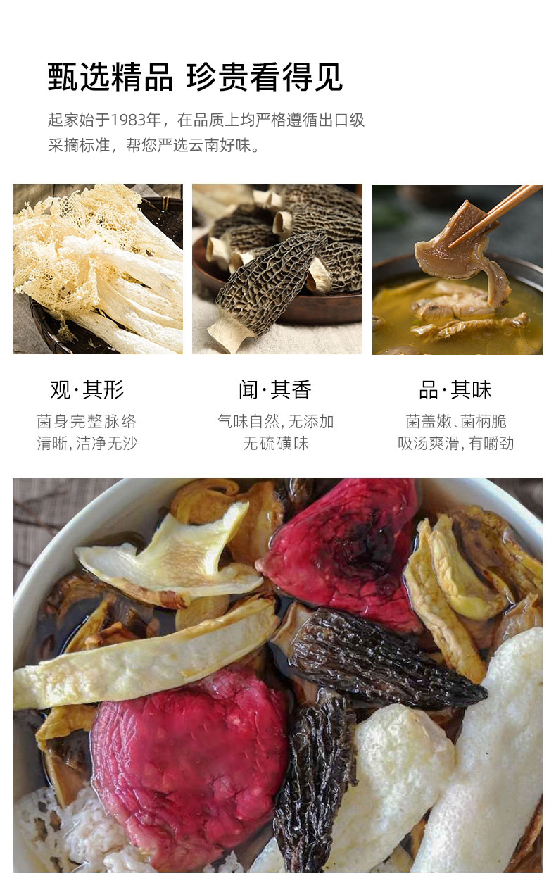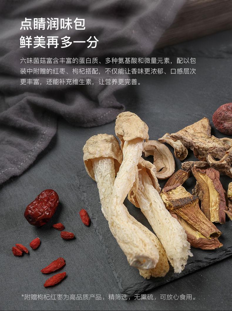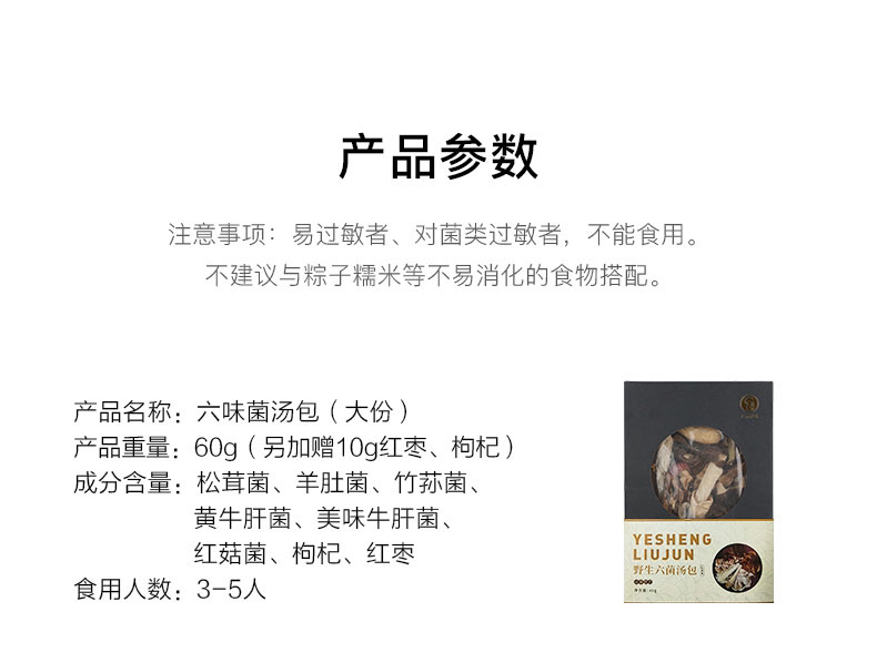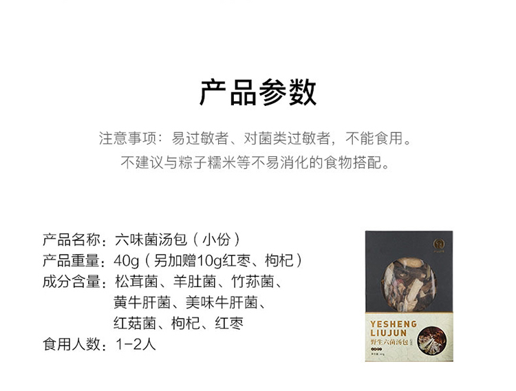 【下单后48小时左右发货】云南 六味菌汤包2盒装 60g/盒或者40g/盒 内含:松茸、羊肚菌、红菇、竹荪、黄牛肝菌、美味牛肝菌6种。60g适合3-5人,40g适合1-2人。
