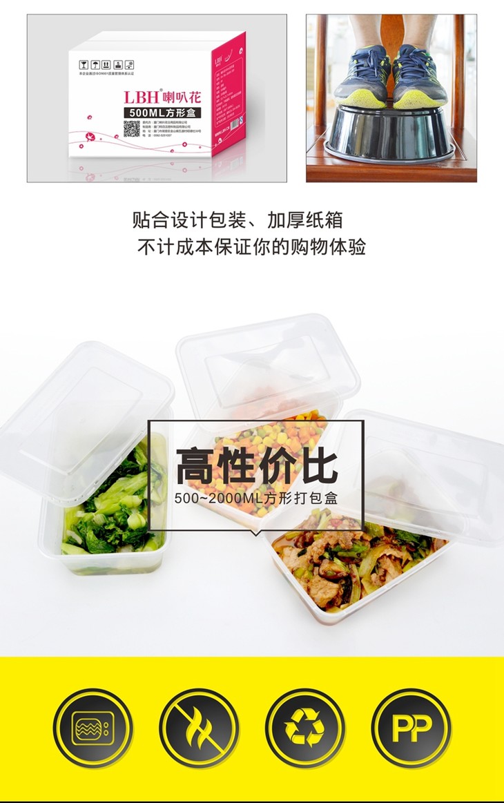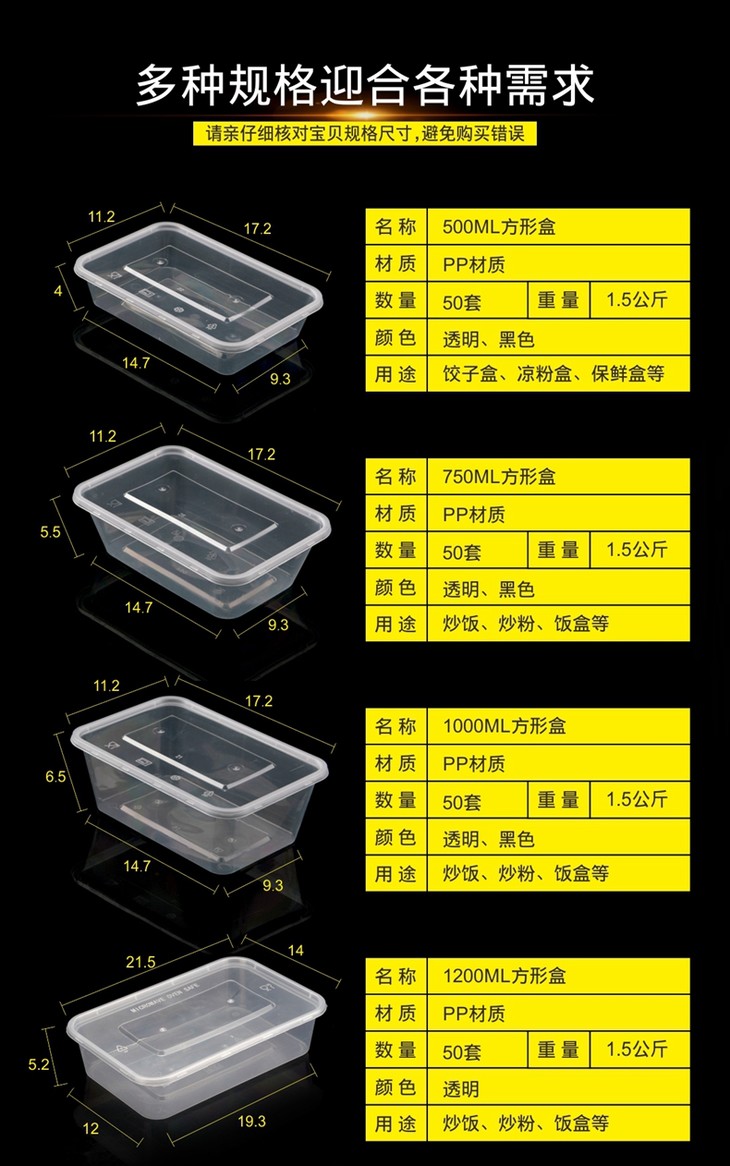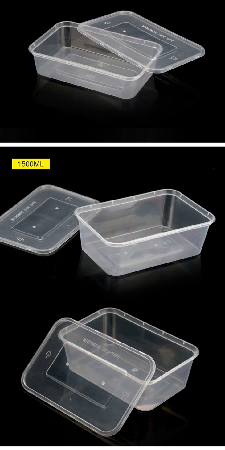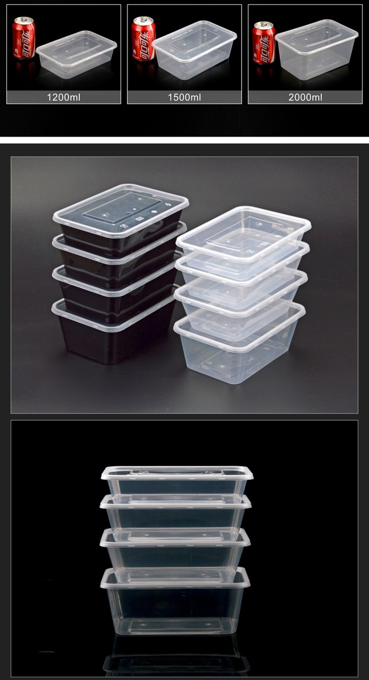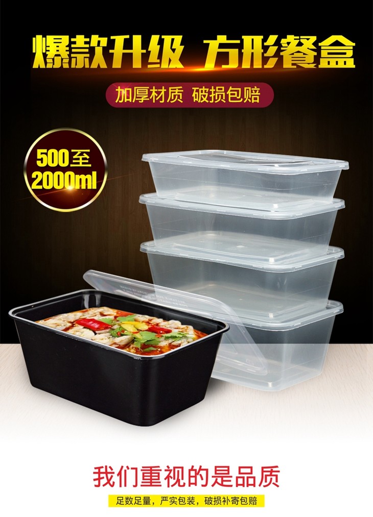 喇叭花1000ml1500ml长方形一次性餐盒透明打包盒塑料外卖饭盒50套