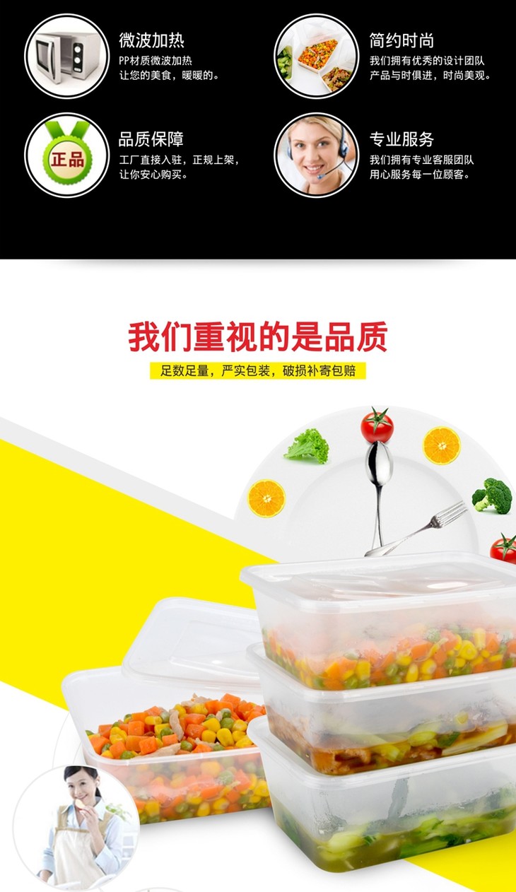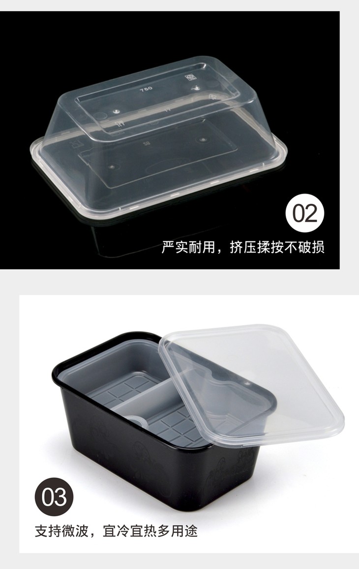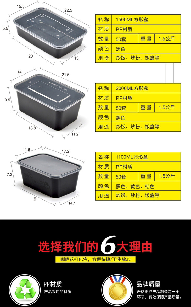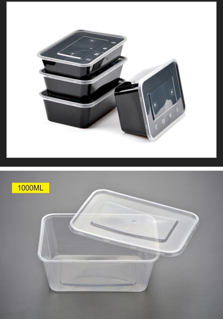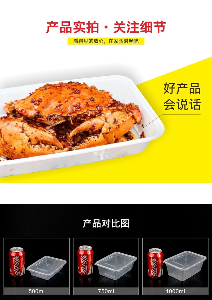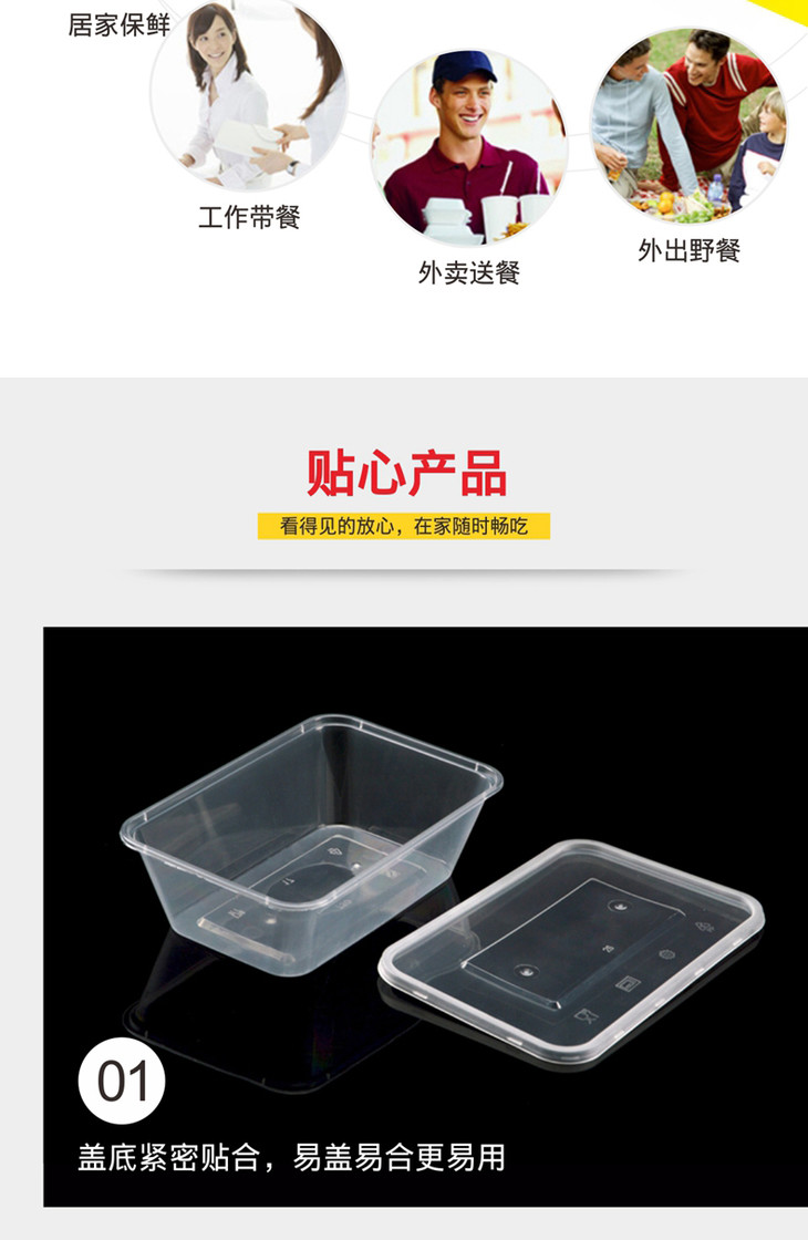 喇叭花1000ml1500ml长方形一次性餐盒透明打包盒塑料外卖饭盒50套