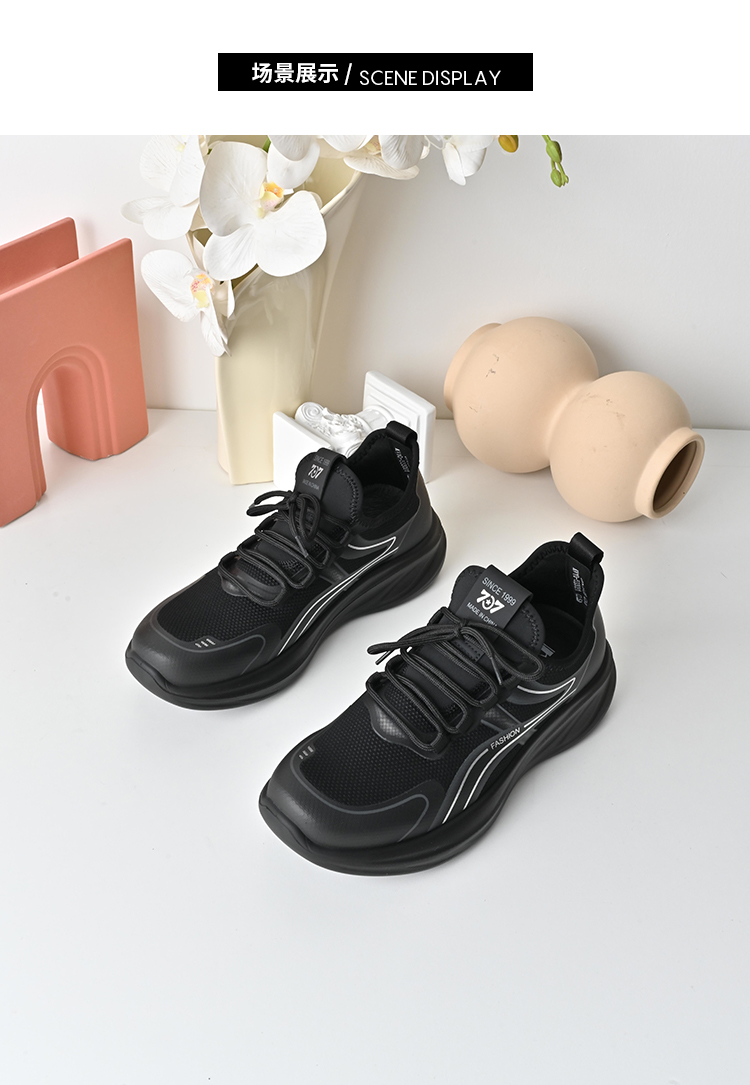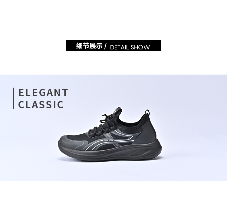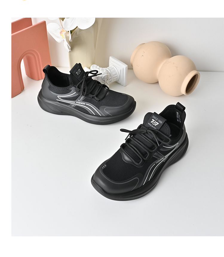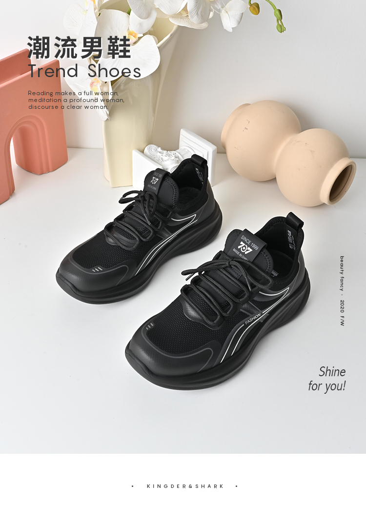经典鲨2025秋季专柜新品男士百搭黑色透气舒适系带跑步休闲鞋KW10-533091