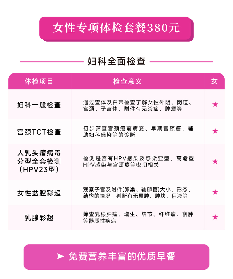 【38女神专享】女性专项体检套餐②(海南分院)