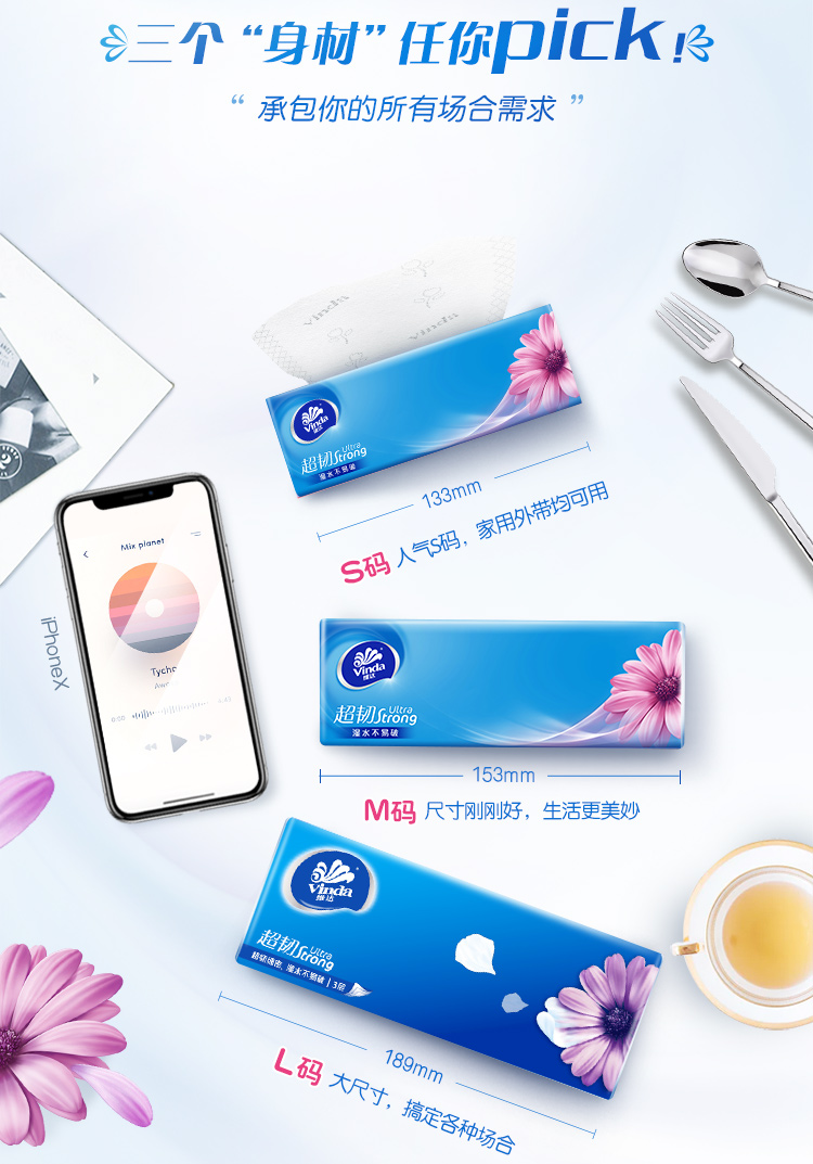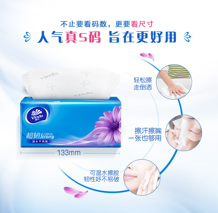 维达超韧抽纸3层130抽6包S码纸巾餐巾纸卫生纸面巾纸