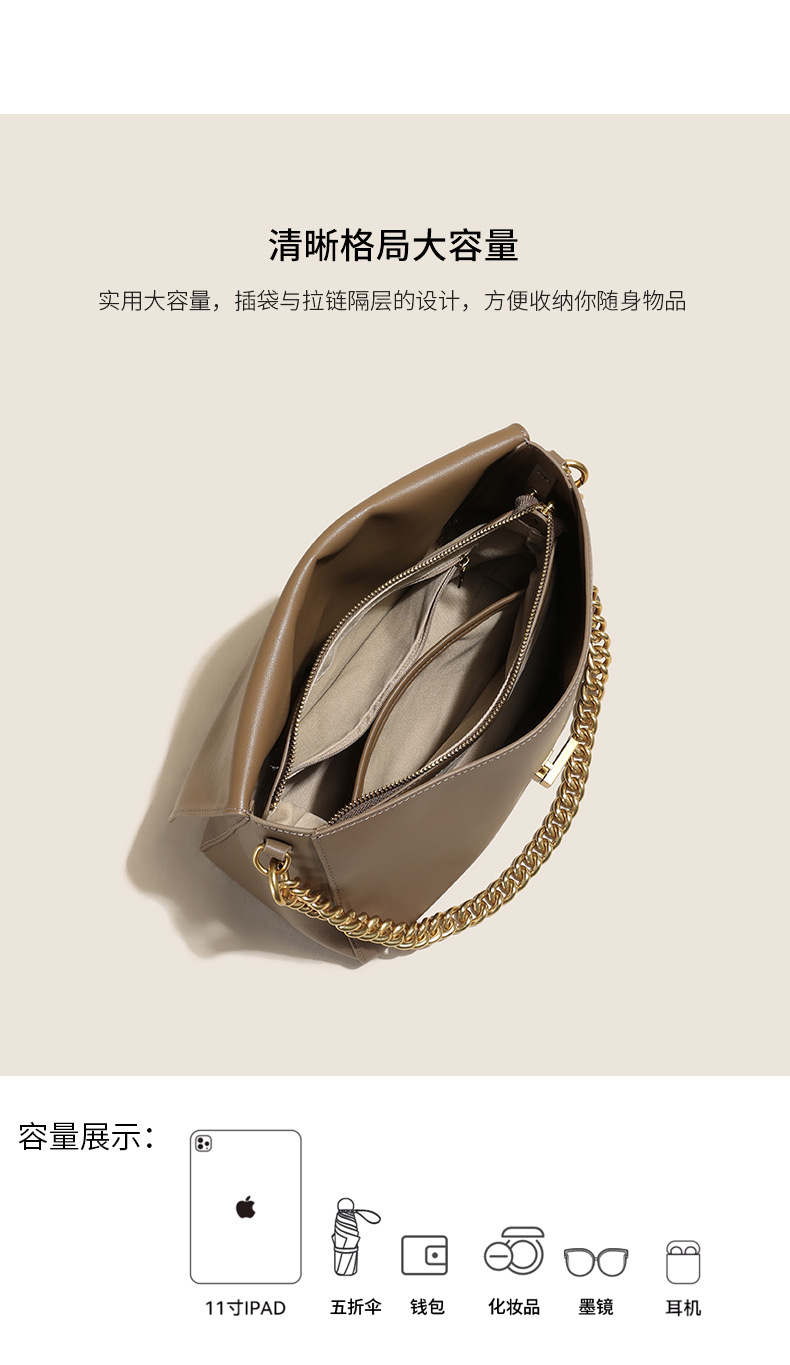 【预售3天】斜挎包女2025新款小众高级感链条包大容量通勤单肩包T5715