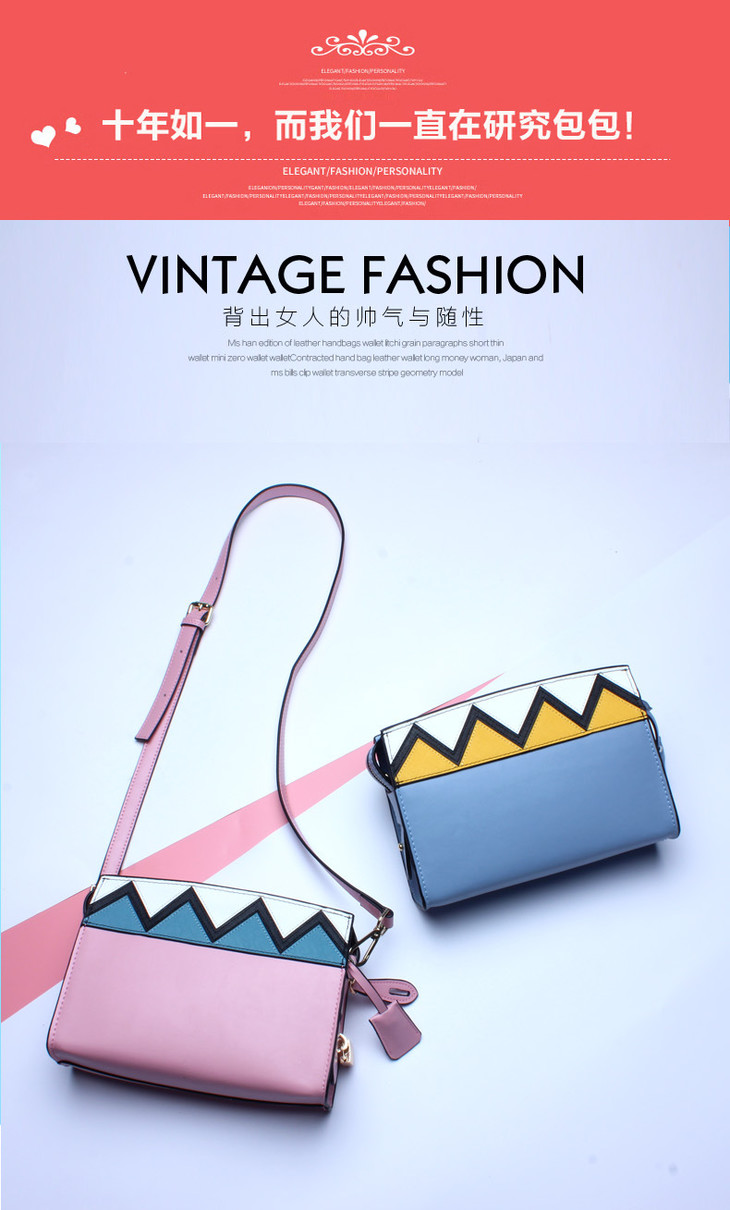 【服饰鞋包】包包女新款欧美拼色女包波浪纹斜挎小包女宽带小方包