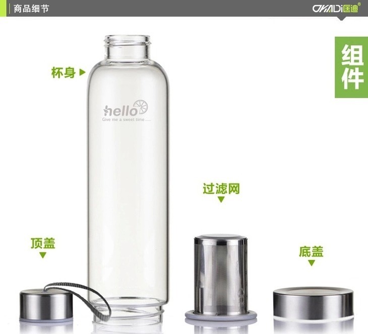 【匡迪】新款便携水晶玻璃杯高硼硅带漏网水杯子