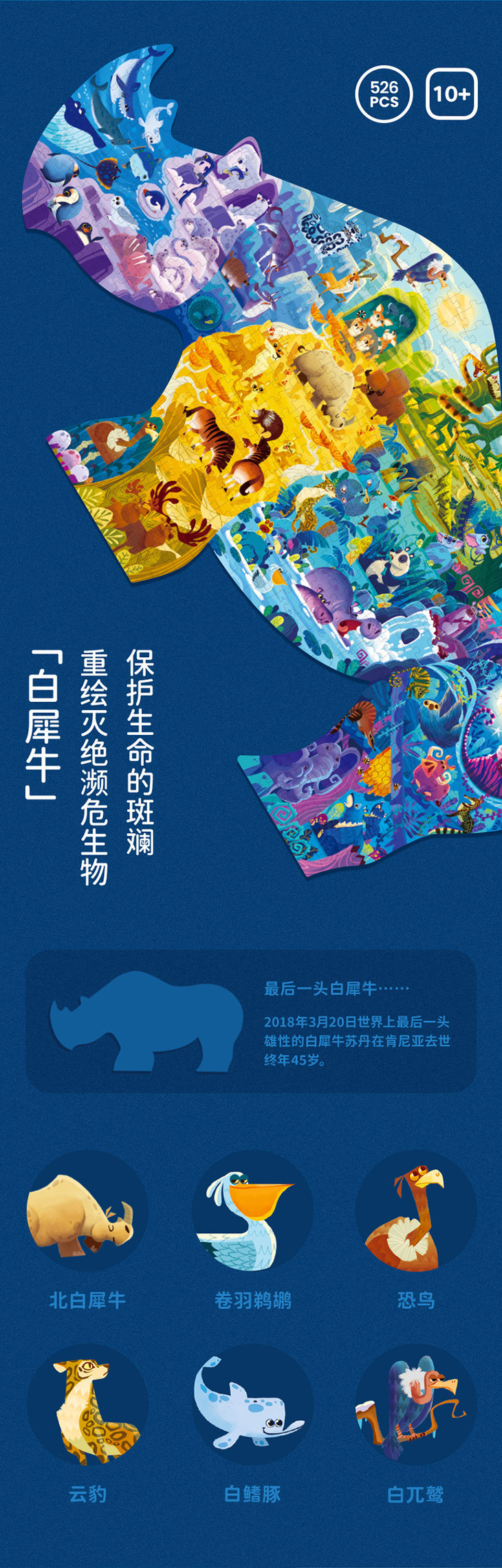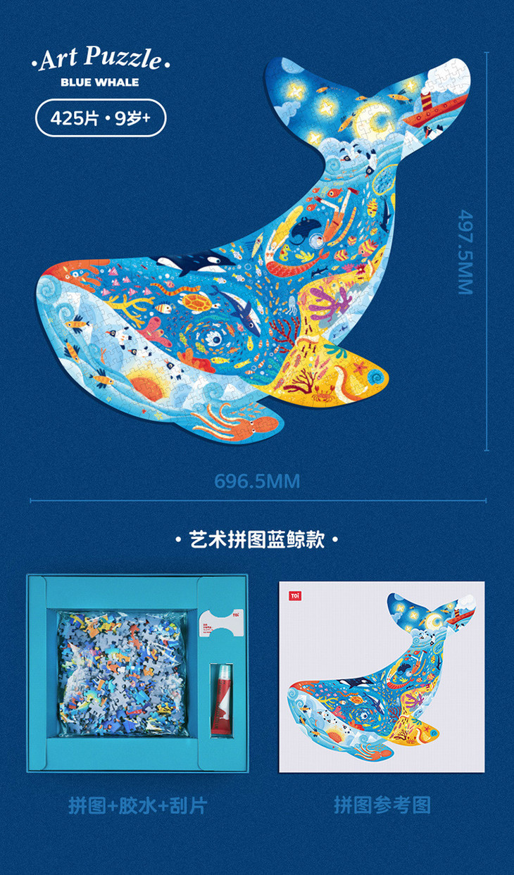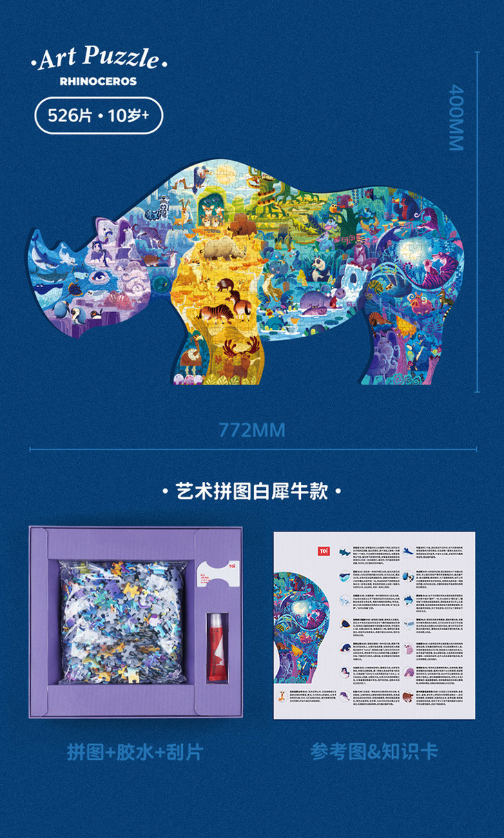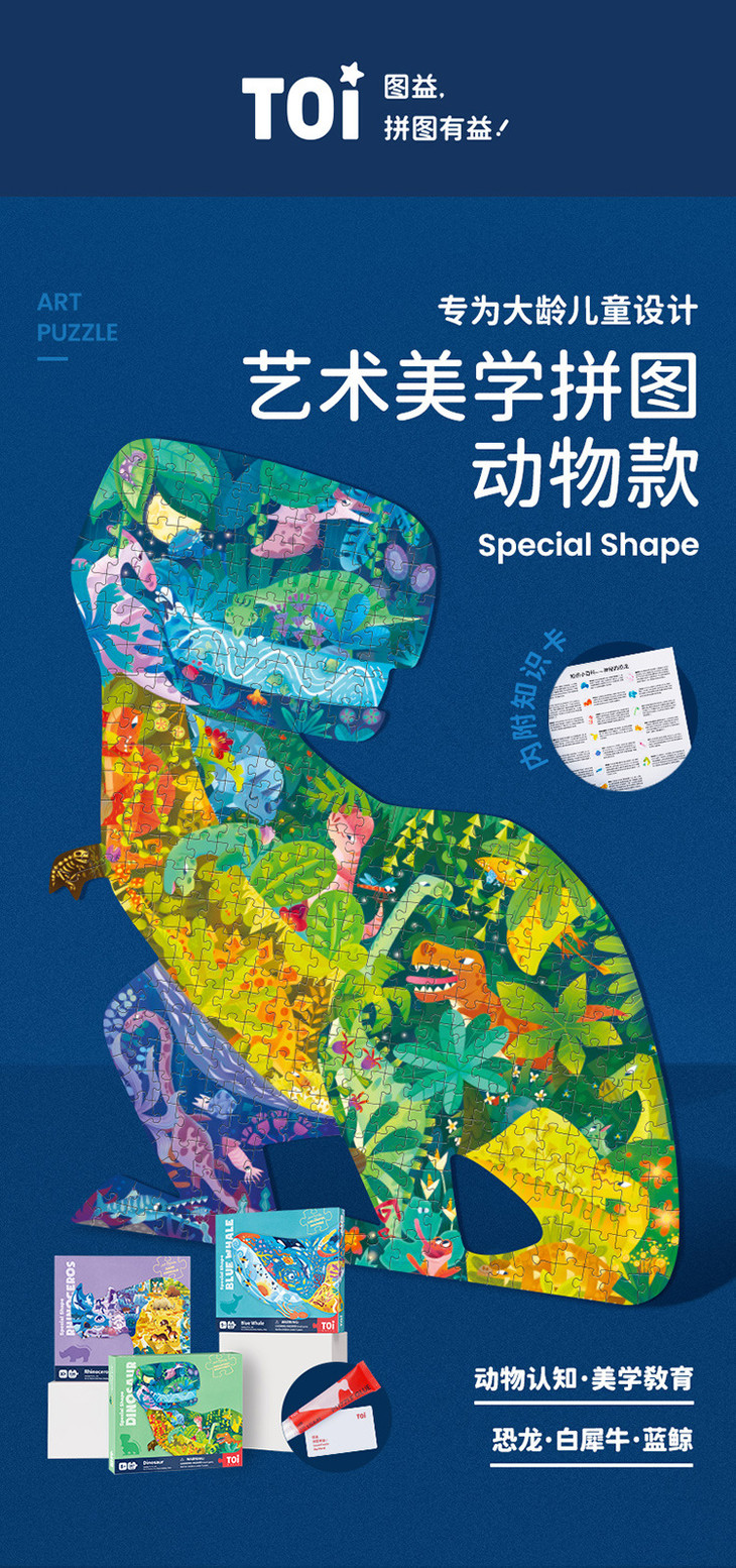 【儿童玩具】*TOI艺术动物拼图儿童益智玩具恐龙蓝鲸犀牛款526片大龄早教拼装