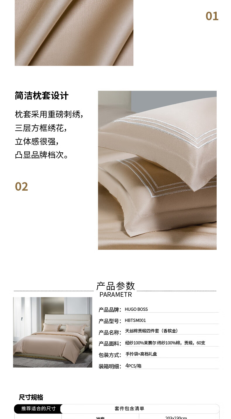 (分2个包裹发货)丝棉贡缎四件套(香槟金)HBTSM001+BOSS蚕丝蛋白被 HBCS-010 【GHCJ23.0】