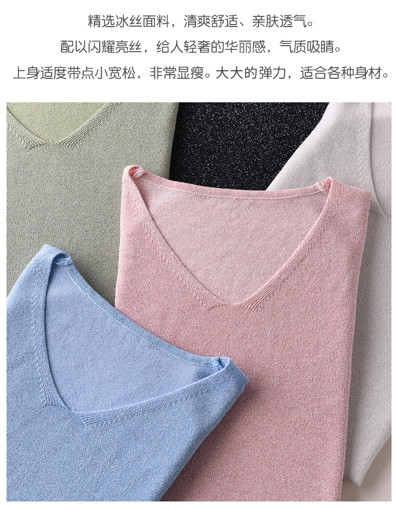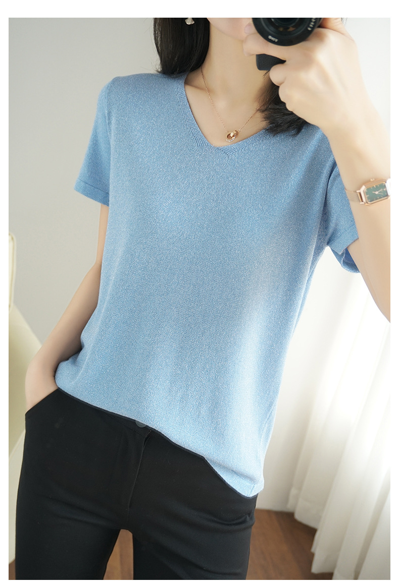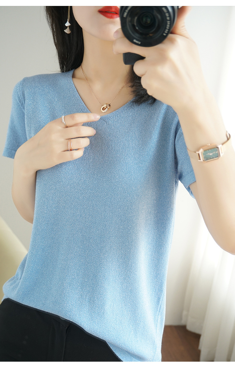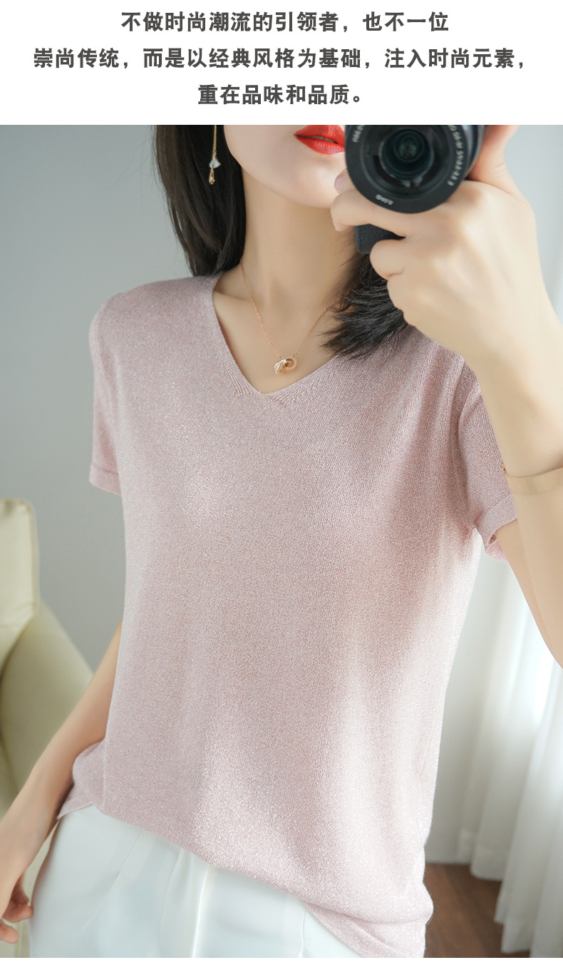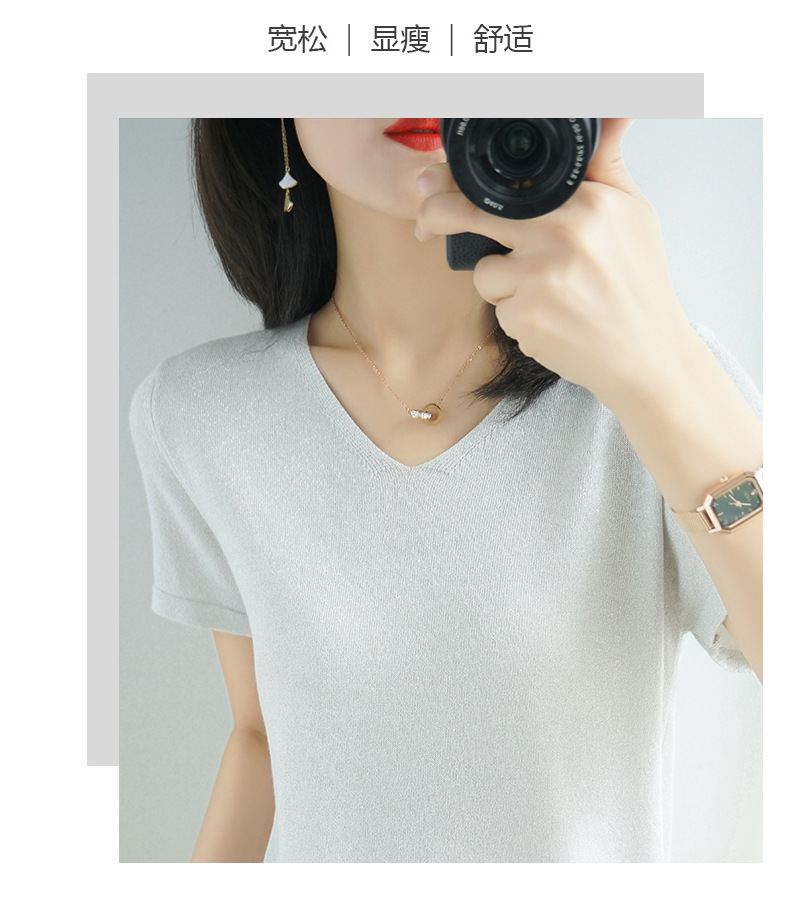 【低调の优雅】V领冰丝短袖 银丝闪光 气质吸睛 清爽舒适 亲肤透气