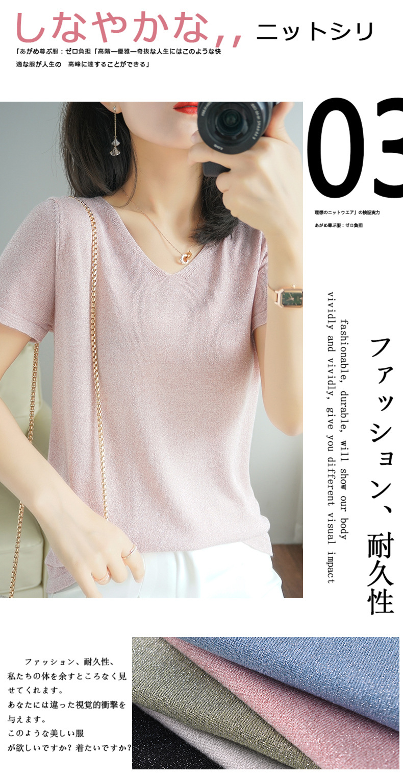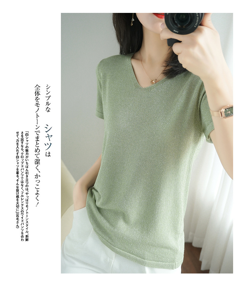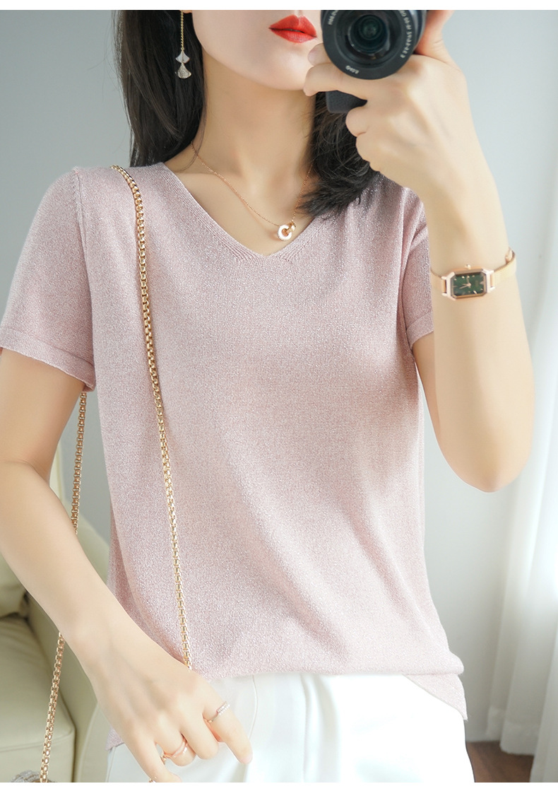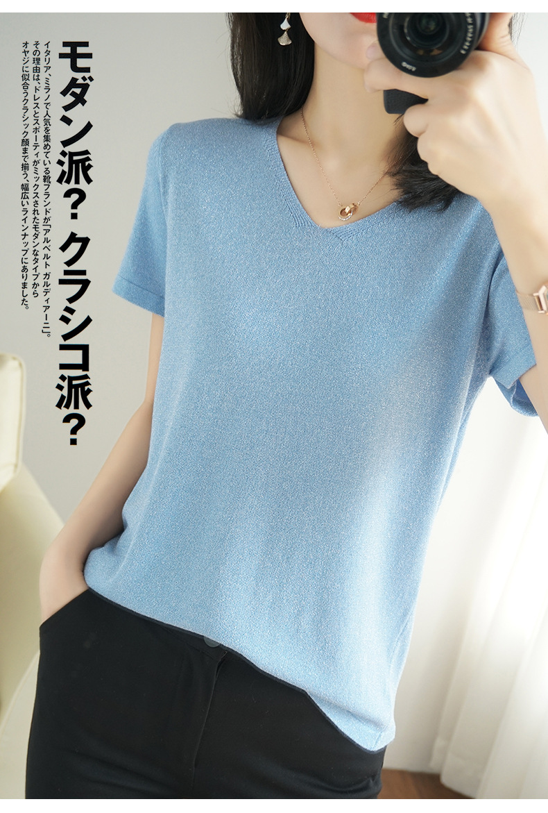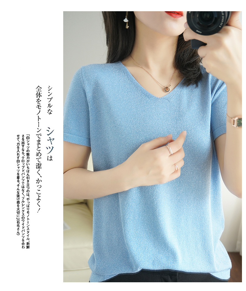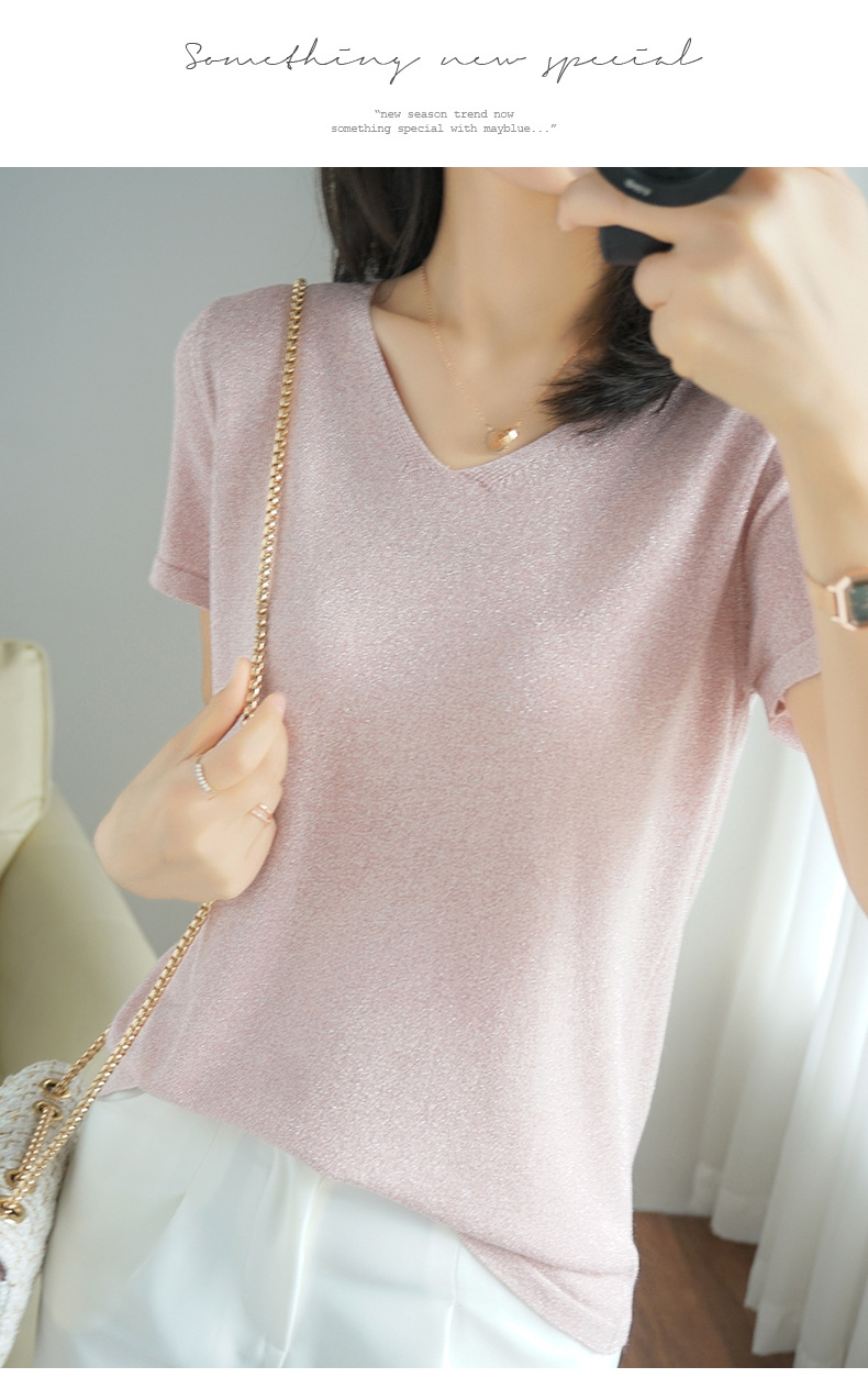【低调の优雅】V领冰丝短袖 银丝闪光 气质吸睛 清爽舒适 亲肤透气