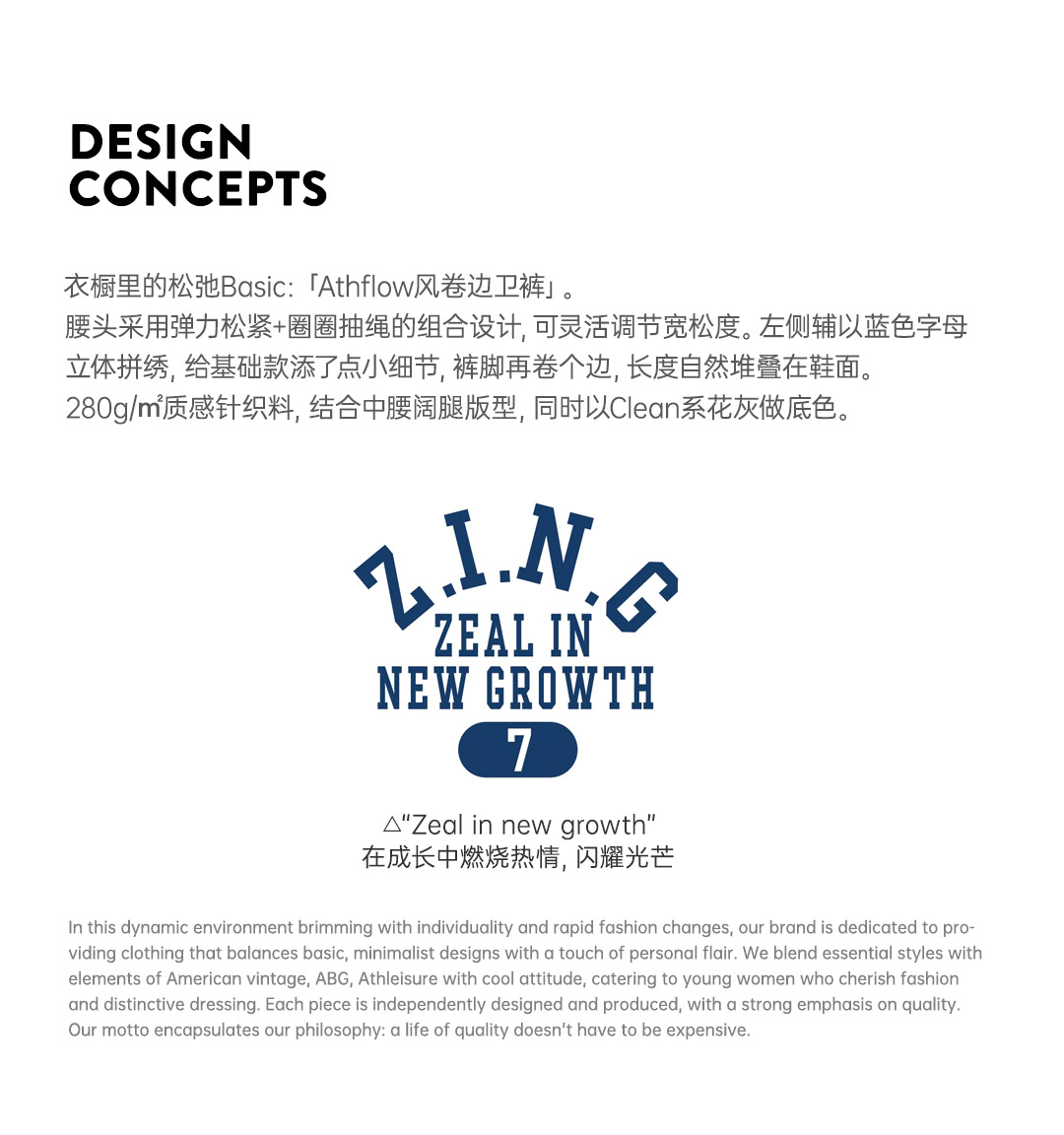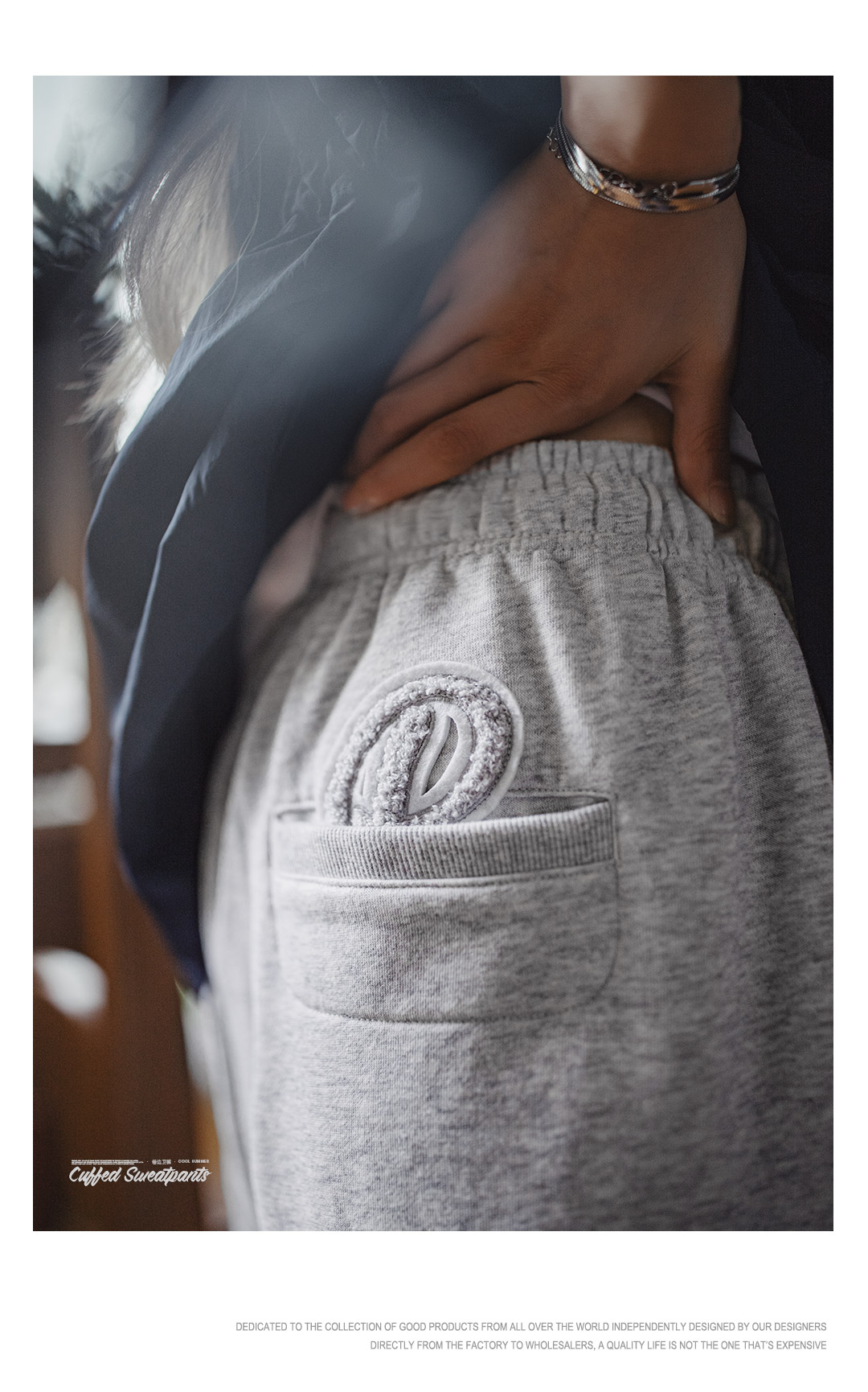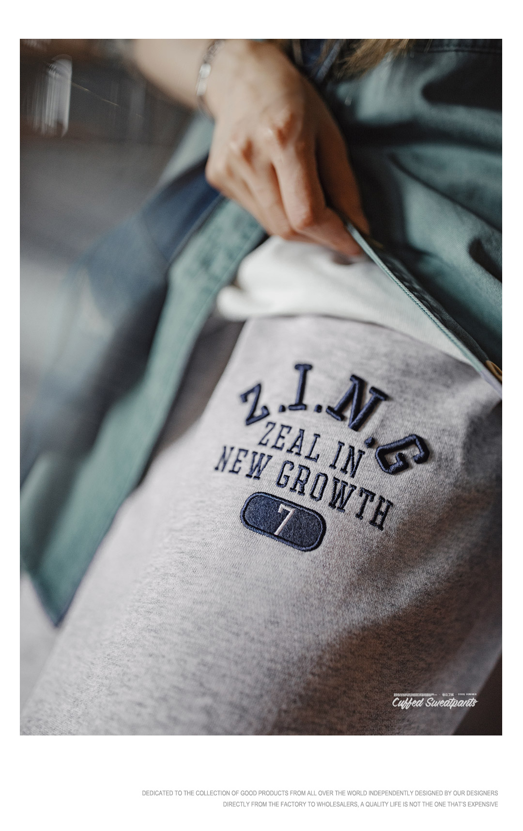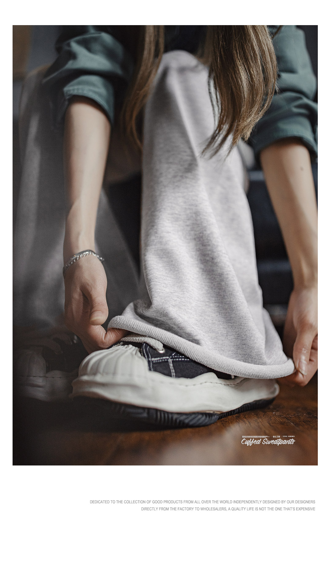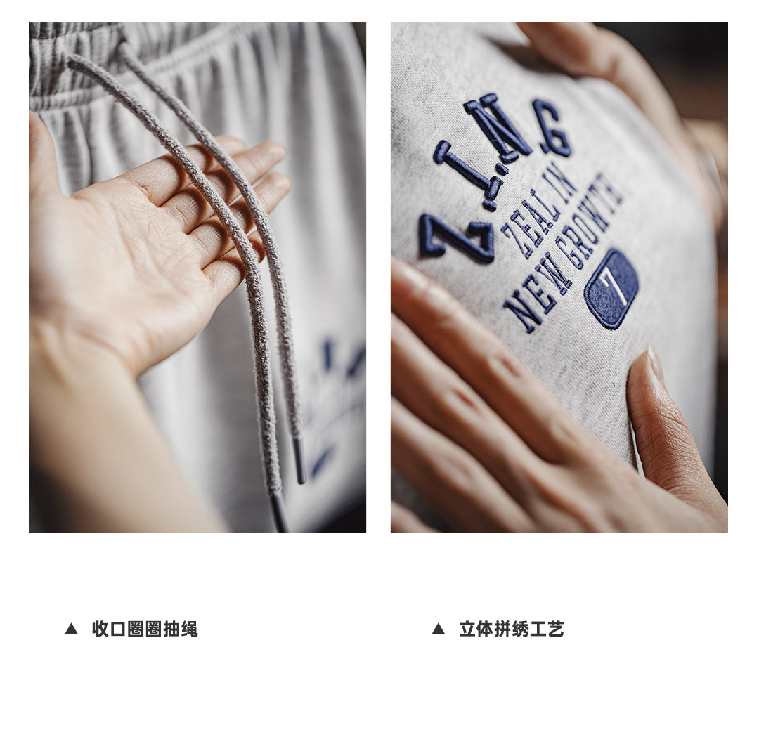 马登2025新款白花灰色高腰直筒阔腿卷边抽绳运动休闲卫裤女士秋季