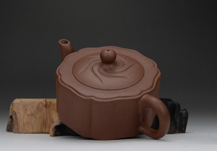 水纹壶胎骨坚硬、胎质细腻,以水波纹为灵感。整壶方中带圆,圆中有方,每一面都呈现柔和的波浪曲线。细看壶体色泽温润、金沙隐隐,抚摸质感至佳。