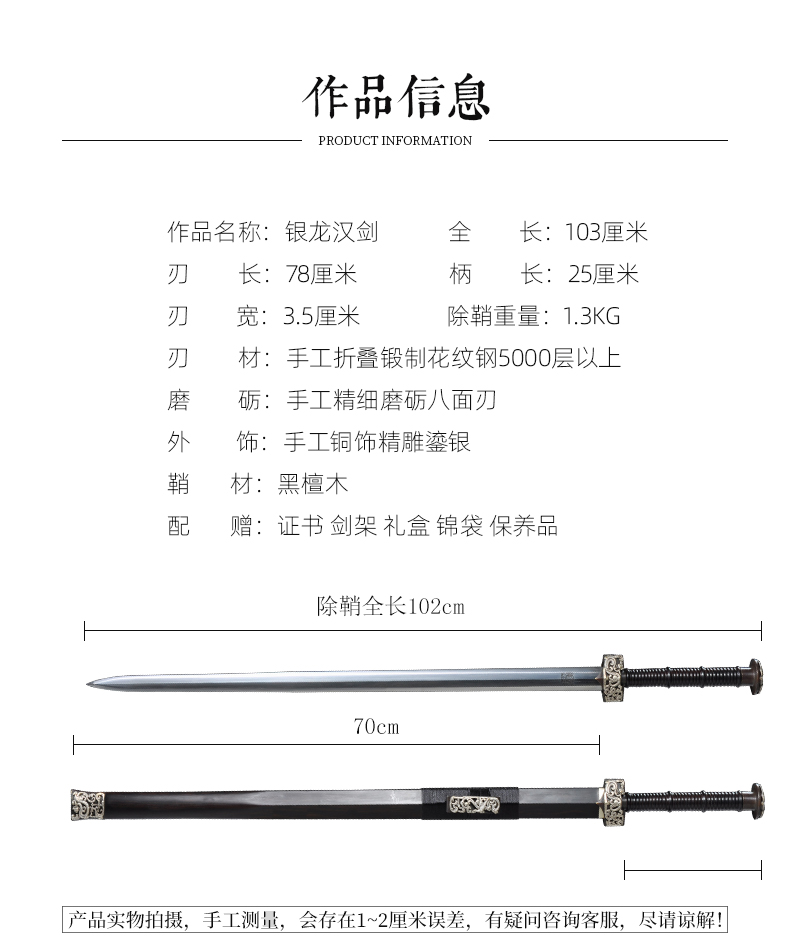 银龙汉剑 手工传统 龙泉沈广隆宝剑 收藏镇宅宝剑 sgl-6033未开刃