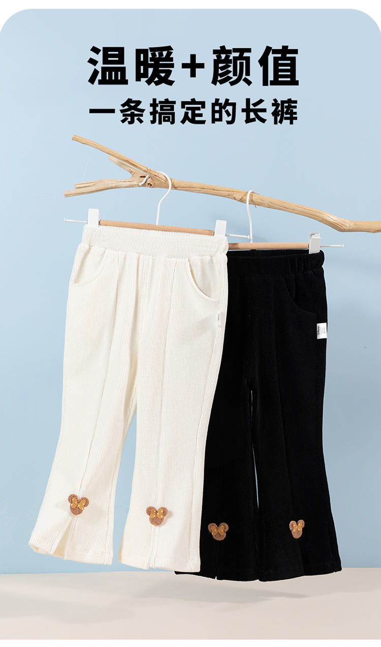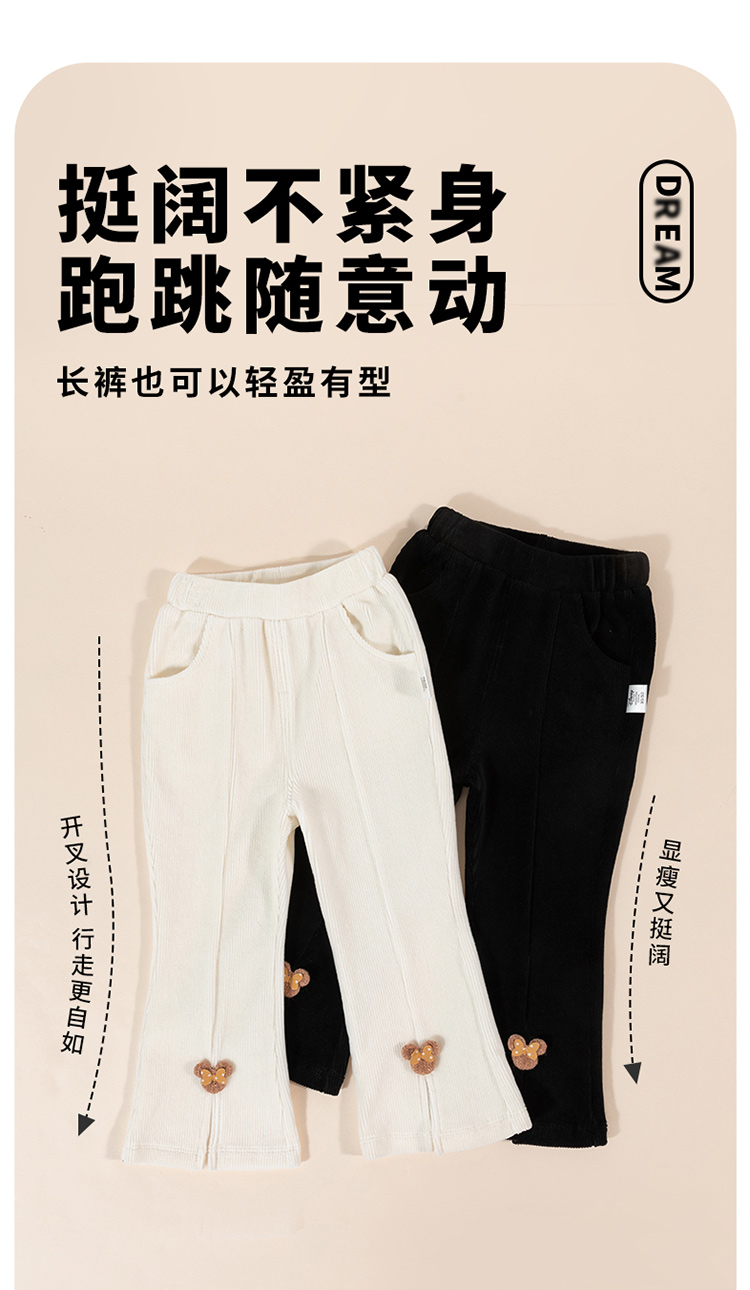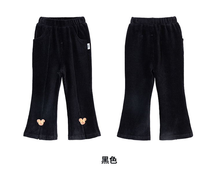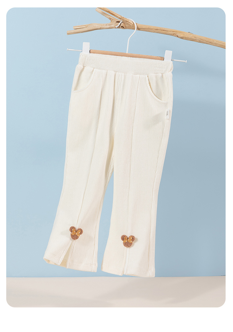 迪士尼童装秋冬新款女童保暖松紧长裤儿童复古时尚开叉微喇裤ZD3CK001