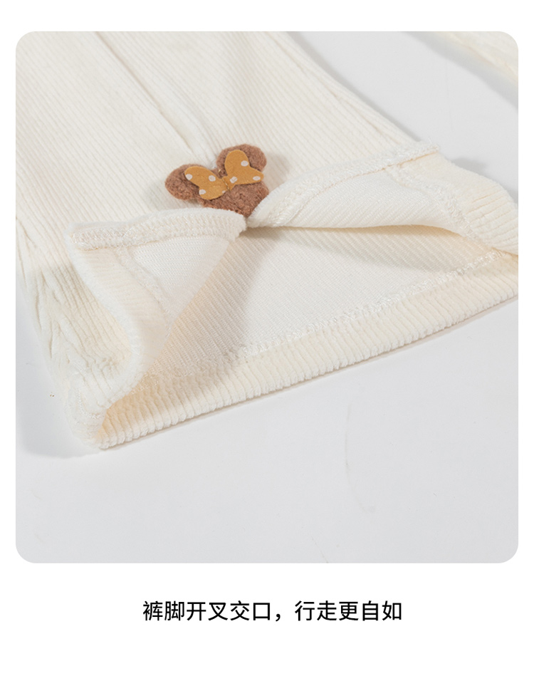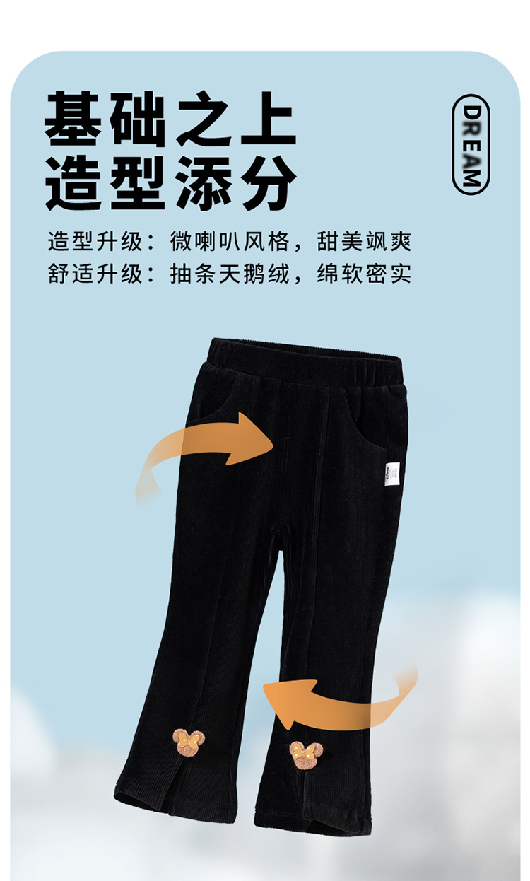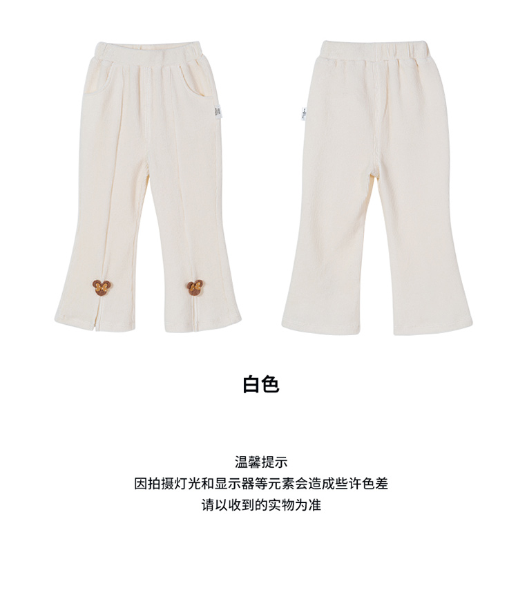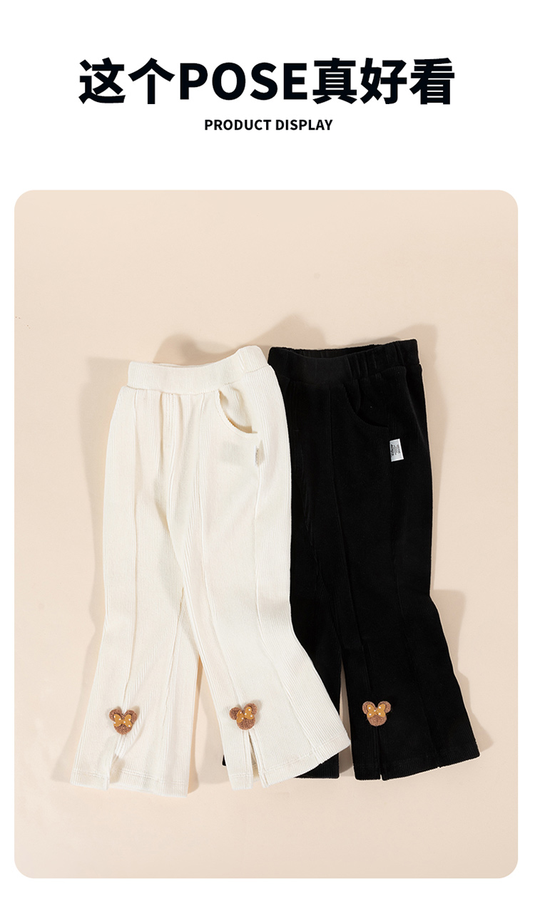迪士尼童装秋冬新款女童保暖松紧长裤儿童复古时尚开叉微喇裤ZD3CK001