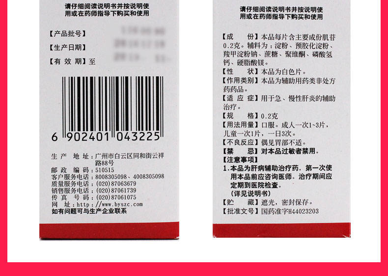 白云山侨光肌苷片100片急慢性肝炎辅助治疗药肌肝片肌甘片肌酐片