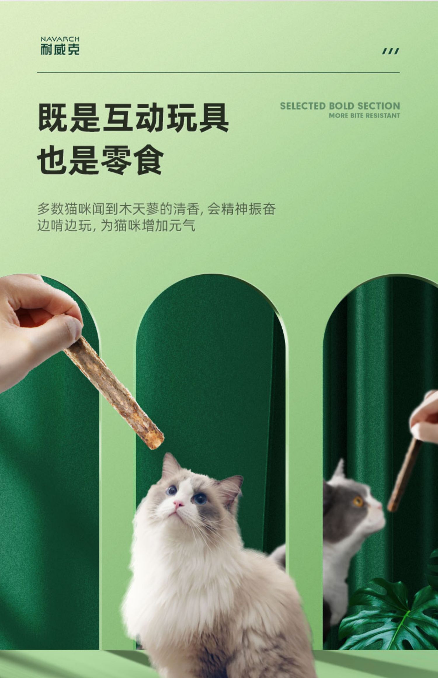 耐威克猫咪磨牙洁齿|逗猫棒|啃咬玩具|木天蓼粗棒